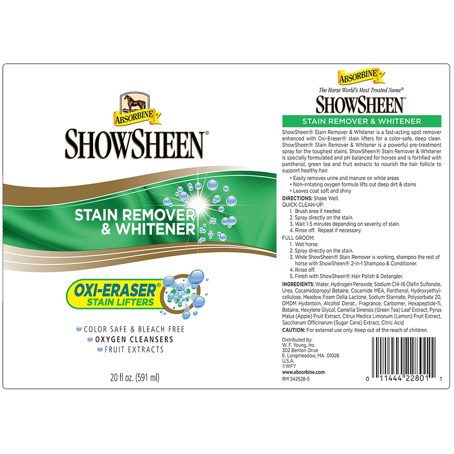 Absorbine ShowSheen Stain Remover & Horse Whitener, Oxi-Eraser Stain Lifters, 20oz