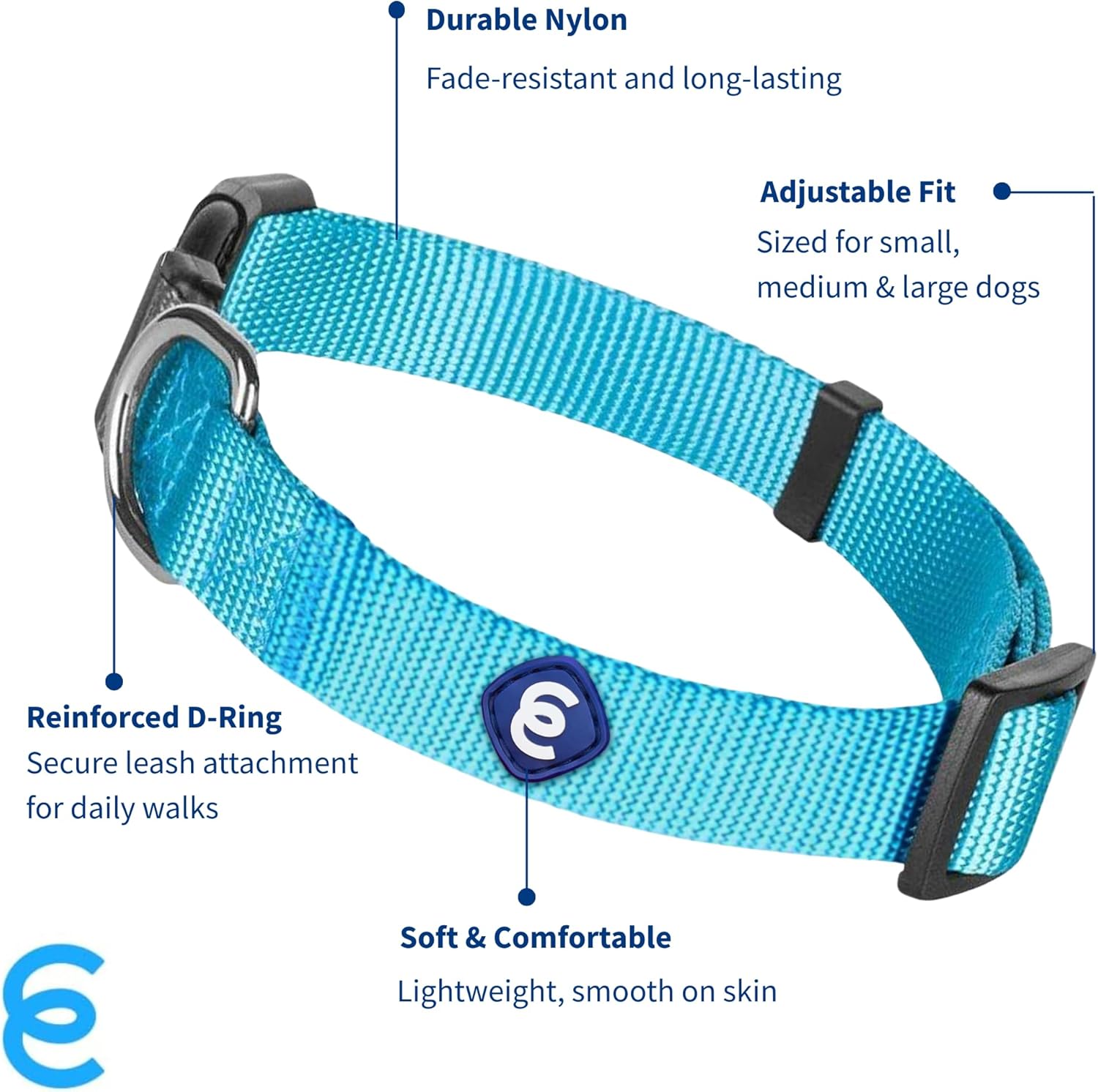 - Eco-Friendly & Adjustable: Our medium dog collar is perfect for eco-conscious pet parents. Made from high-density nylon, this turquoise beauty adjusts from 14.5"-20" for a snug, comfy fit for small and medium dogs.
