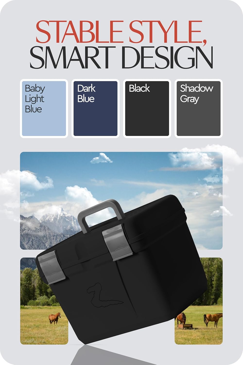 - ✅ More Than Just a Grooming Box: This grooming tote box doubles as a step for when you need one. Thanks to a non-slip surface on the lid you can safely use the box as a step to help groom your horse.