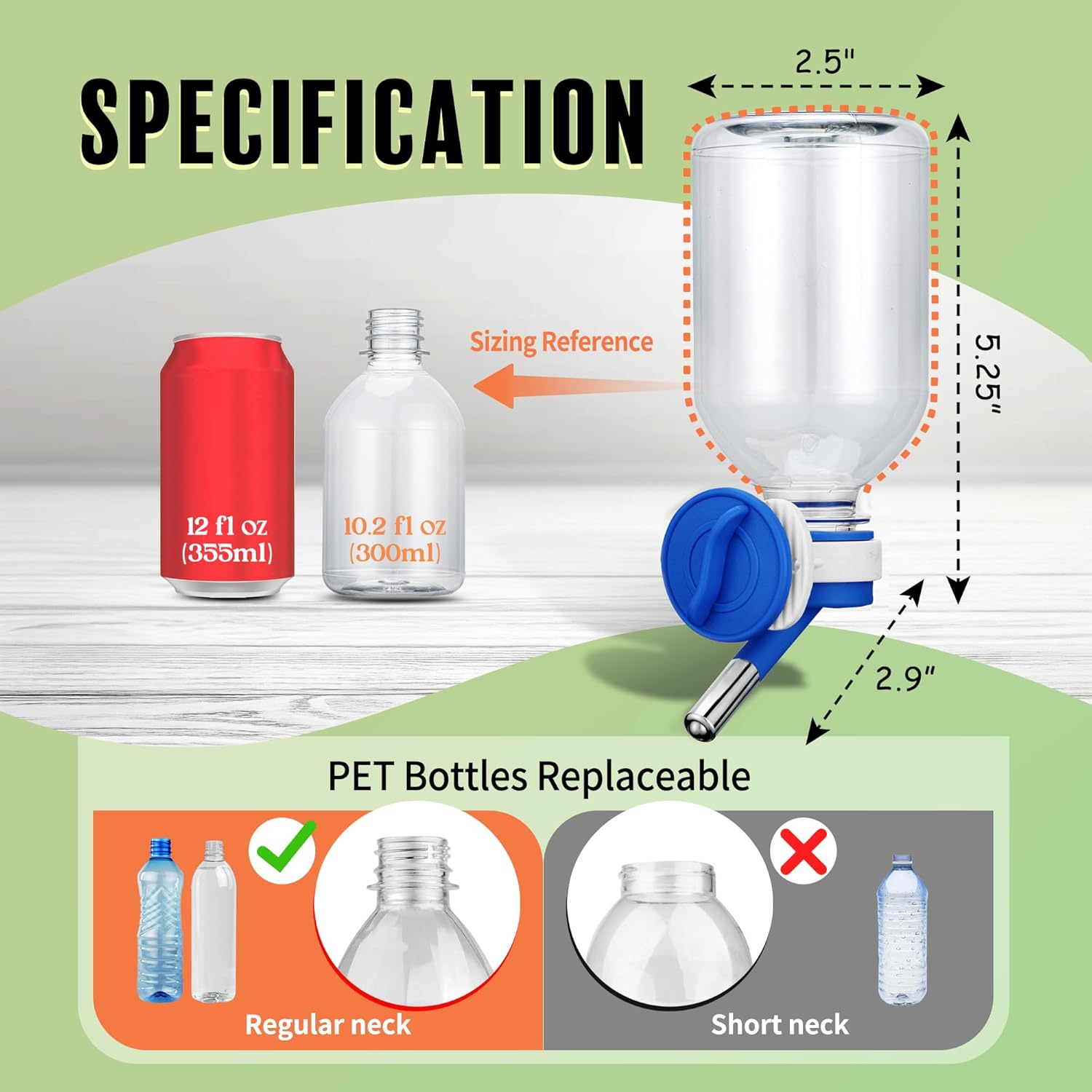 - 🐾 Mini-sized Nozzle (10mm) is perfect for small animals, especially for Hamster/ Hedgehog/ Sugar Glider/ Rat/ Mice. Made of BPA Free Material/ 10.2 oz Capacity.