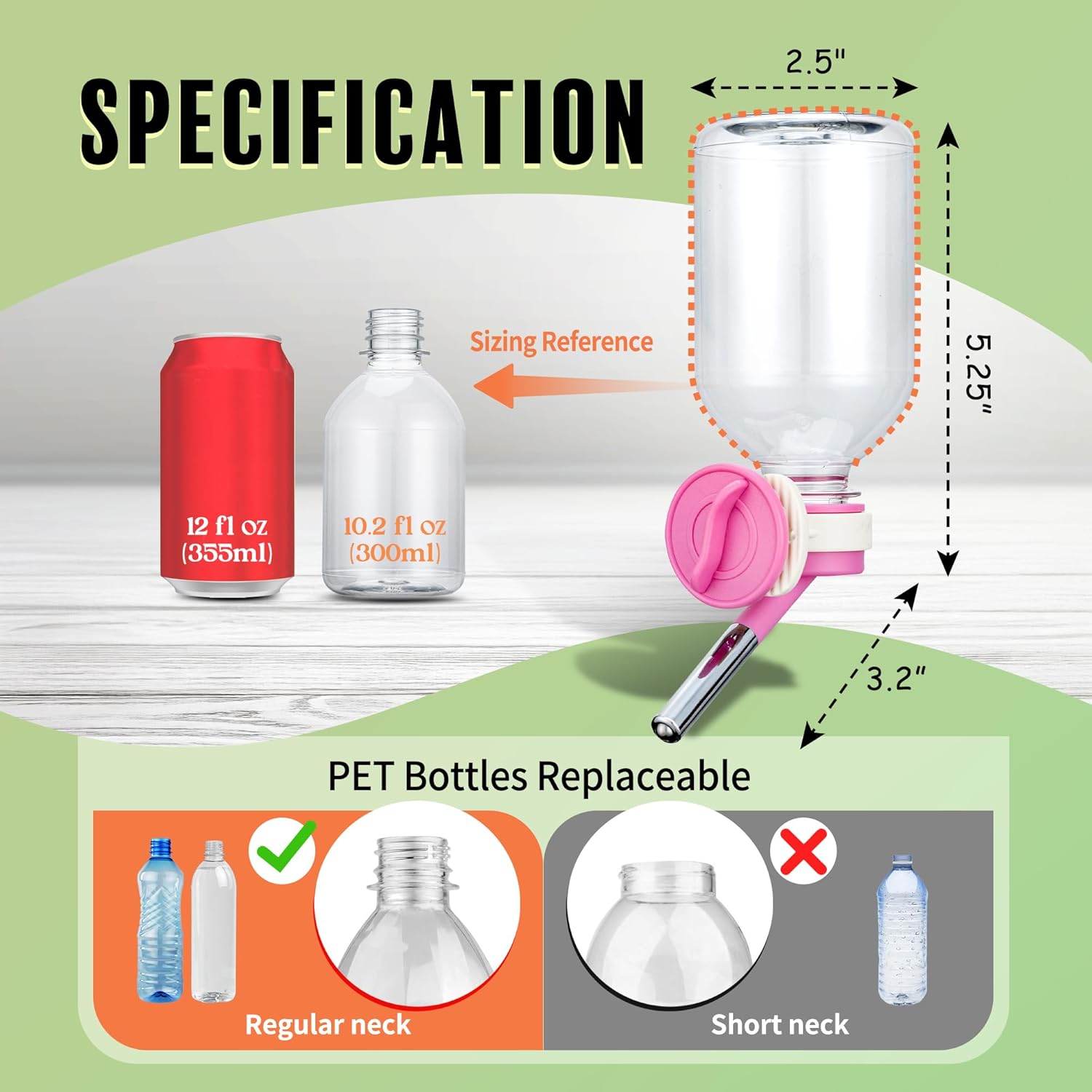- 🐾 Mini-Sized Nozzle (10mm) is recommended for Guinea Pig, Ferret, Hamster, Bunny. / Made of BPA Free Material/ 10.2 oz Capacity.