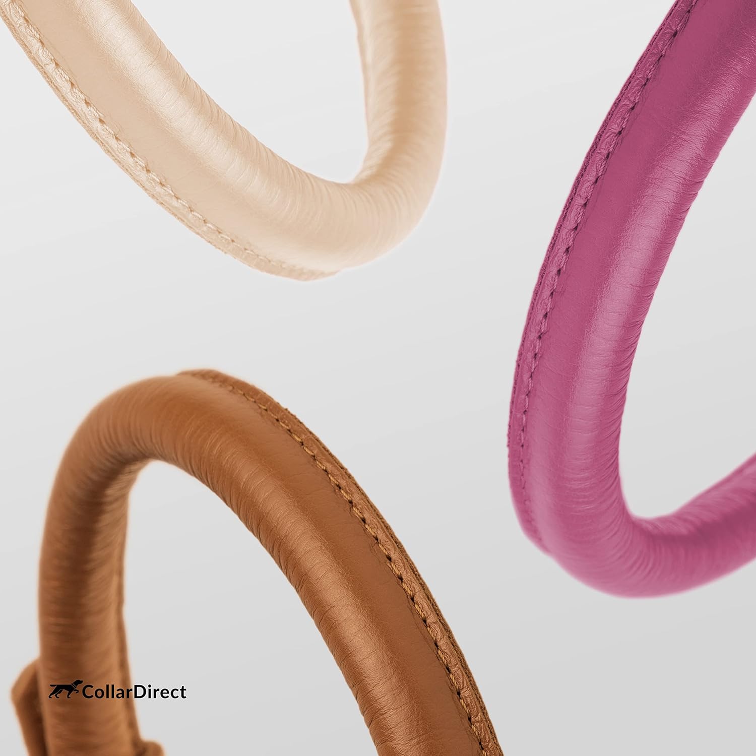 CollarDirect Rolled Leather Dog Collar, Soft Padded Round Puppy Collar, Handmade Genuine Leather Collar Dog Small Large Cat Collars 13 Colors (6-7 Inch, Pink Textured)