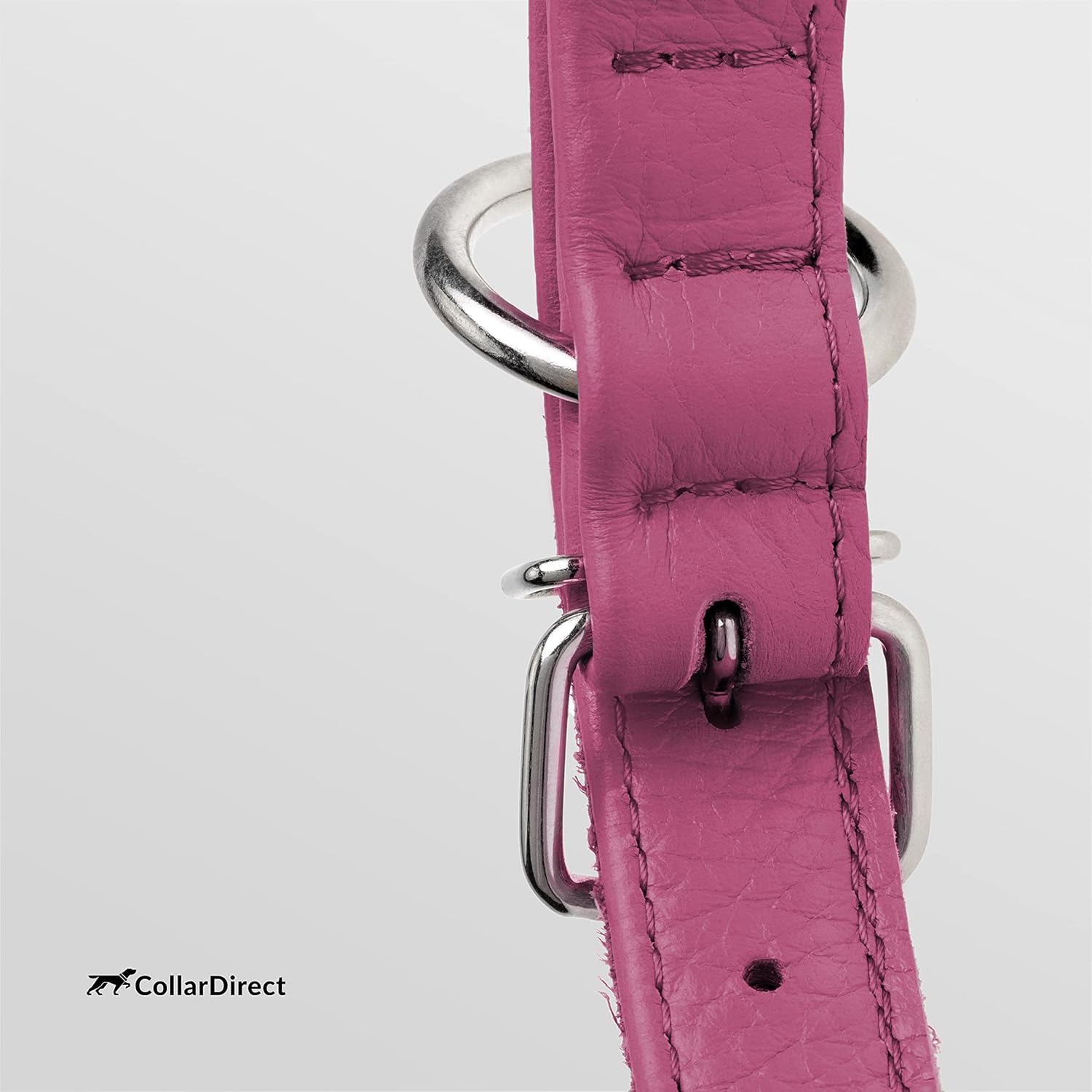 CollarDirect Rolled Leather Dog Collar, Soft Padded Round Puppy Collar, Handmade Genuine Leather Collar Dog Small Large Cat Collars 13 Colors (8-11 Inch, Pink Textured)