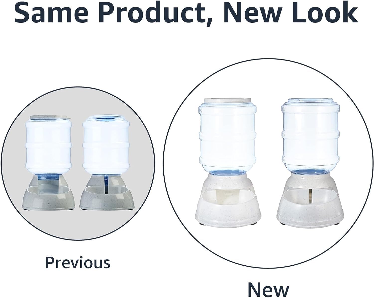 Amazon Basics Automatic Dog Cat Water Dispenser Gravity Feeder Set, Pack of 2, Small, 6-Pound Food Capacity, 1-Gallon, Gray