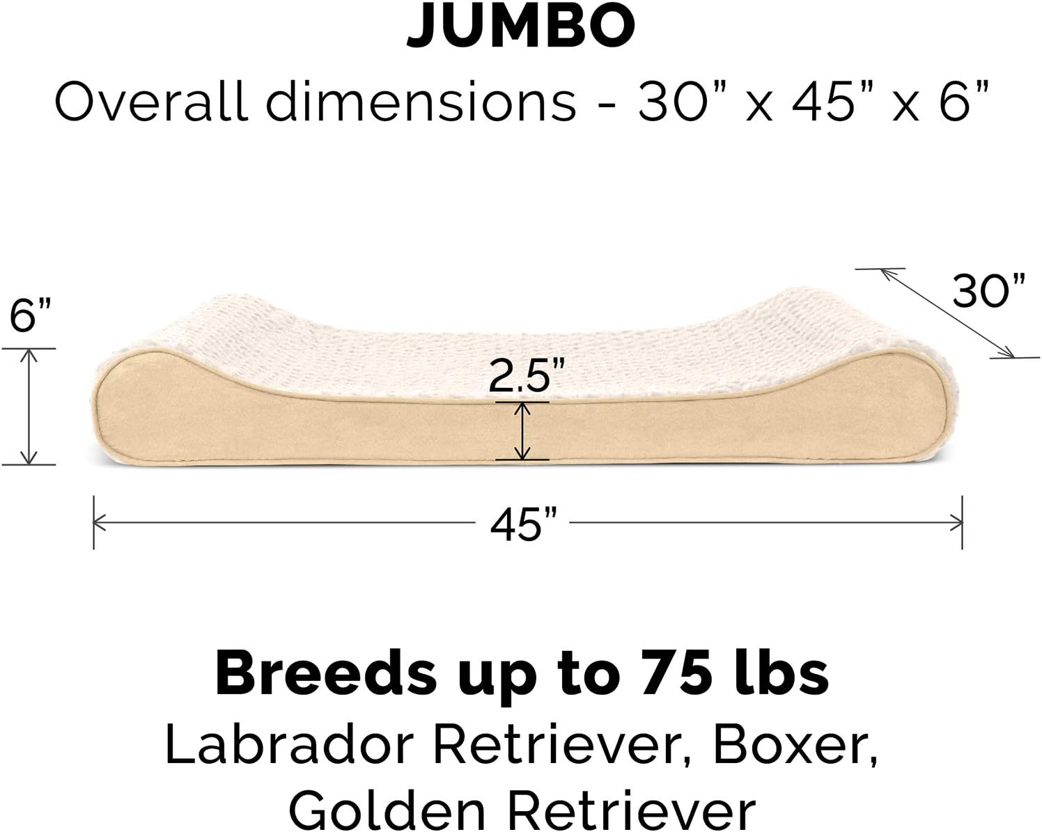 - PRODUCT DETAILS: Cream; Jumbo, 30" x 45" x 6" (2.5" Center; 6" Edges)