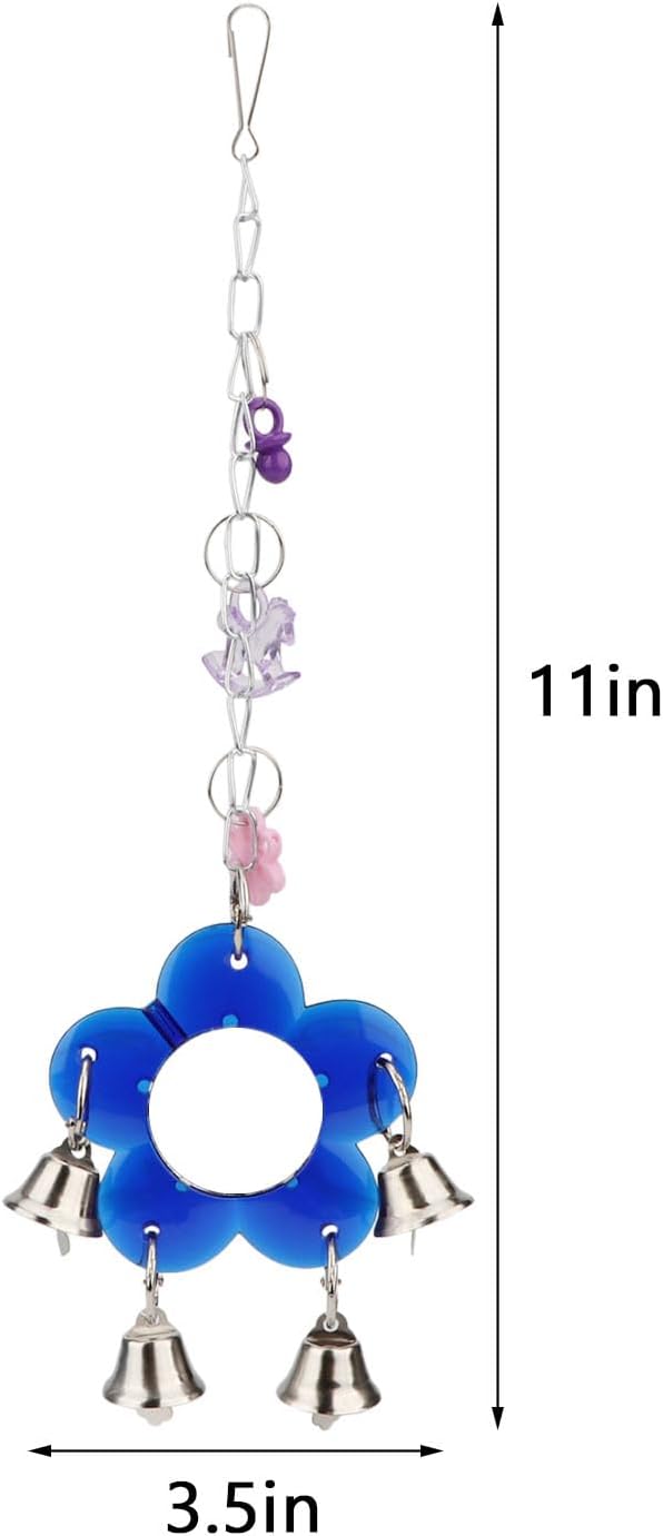 Hypeety Pet Bird Mirror with Bell Interactive Parrot Toy for Parrot Macaw African Greys Budgies Cockatoo Parakeet Cockatiels Conure Lovebird Cage Bells Mirror (B)