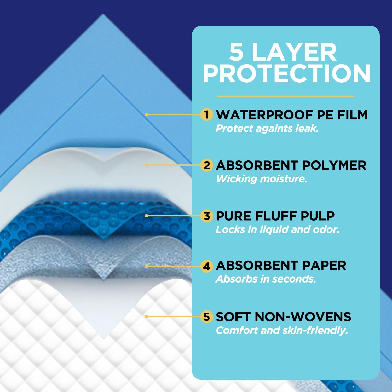 - ✔✔Super Absorbing System---Mix imported fluff pulp and SAP factor,absorbent quickly lock in fluids and help prevent odor. soaking up 1200ml to 1500ml of water per bed mat.keeping liquid away from skin to promote sound sleep and peace of mind for adults or children.