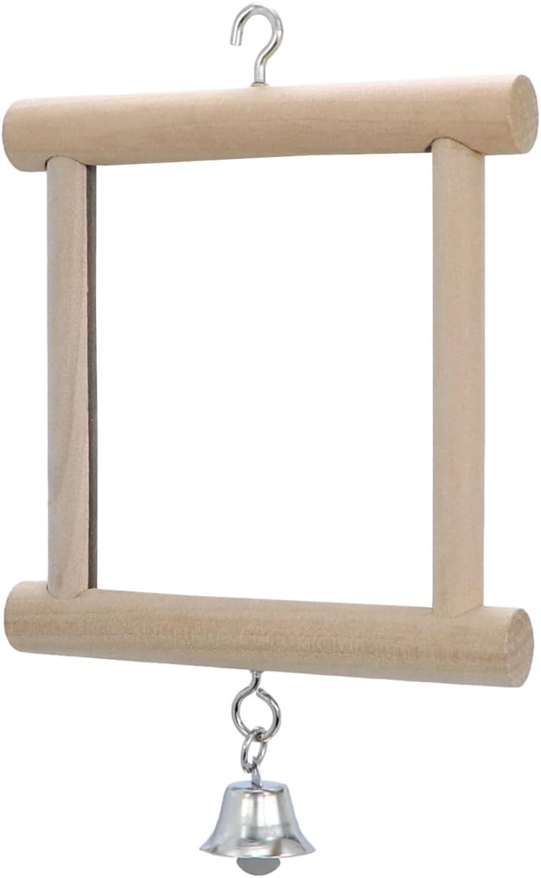 4 PCS Bird Mirror with Bell Parrot Hanging Interactive Playing Toy for Cockatiel Parakeets Canaries Budgie Cage Accessories