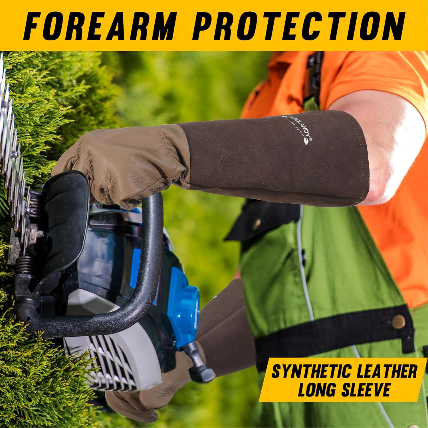 HANDLANDY Long Gardening Gloves for Men & Women, Cowhide Leather Rose Pruning Gloves- Breathable & Durable Gauntlet Glove (Small, Brown)