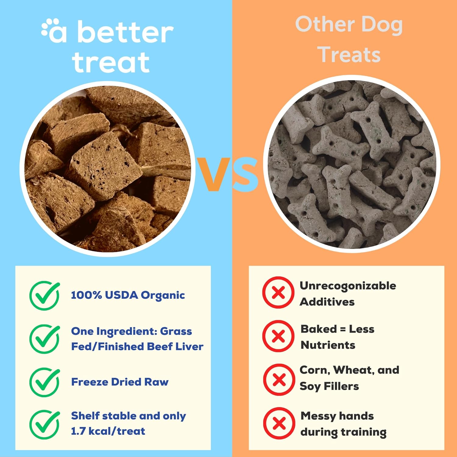 A Better Treat – Organic, Freeze Dried, Single Ingredient, 100% Grass Fed and Finished Beef Liver Dog Treats, Cat Treats | Natural Healthy | Grain Free, High Protein, Diabetic Friendly | Made in USA