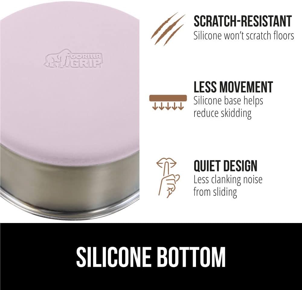 - SILICONE BOTTOM: the Gorilla Grip bowl is constructed from durable silicone that helps keep the bowl steady and won’t scratch your floors; while some over eager eaters may still be able to slide the bowls, the silicone will help prevent much movement; plus, it reduces the noise from clanking and sliding across wood, tile, and more