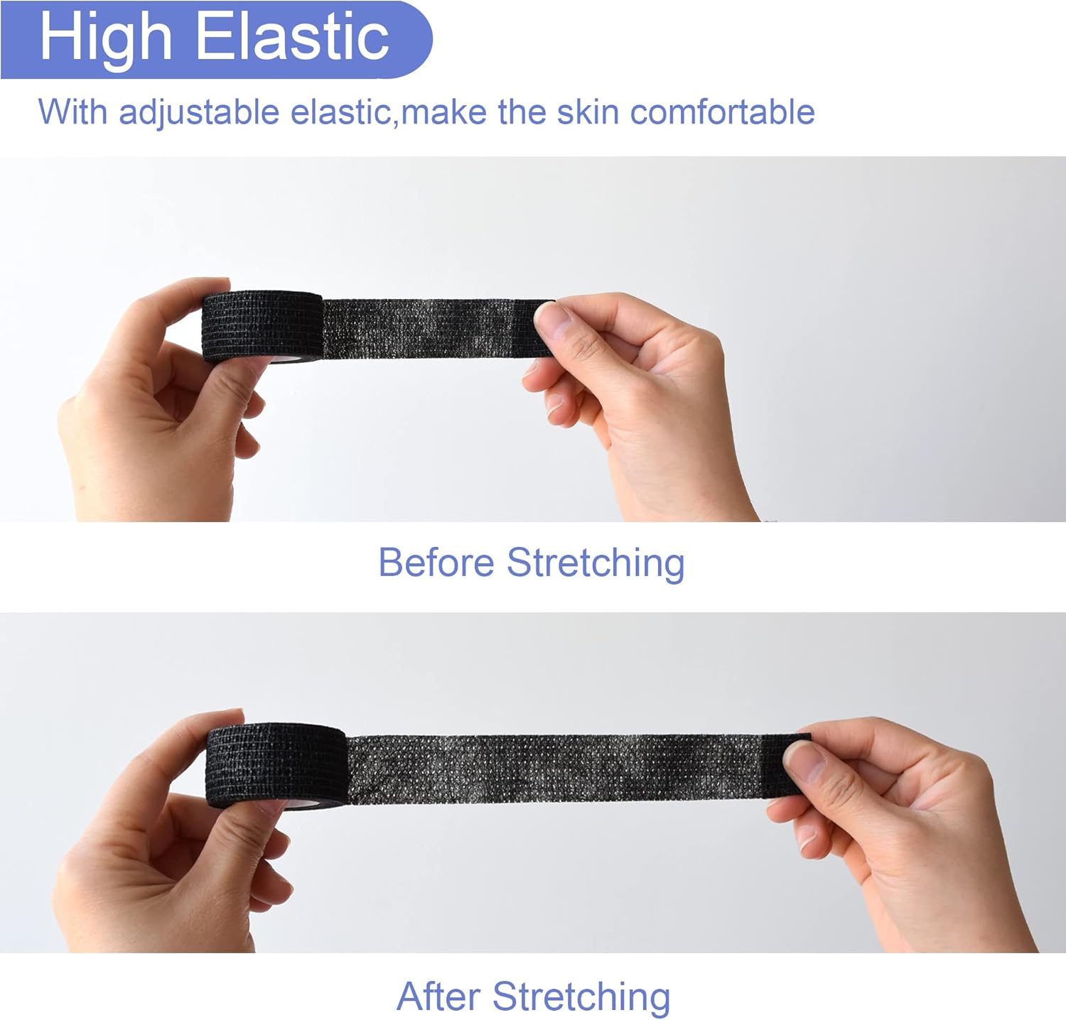 - Self Adhesive: The bandage wrap can stick to itself, stay in place, it can provide a stable support and protection. It will not stick to your hair or skin, so you will not get hurt when removing it.