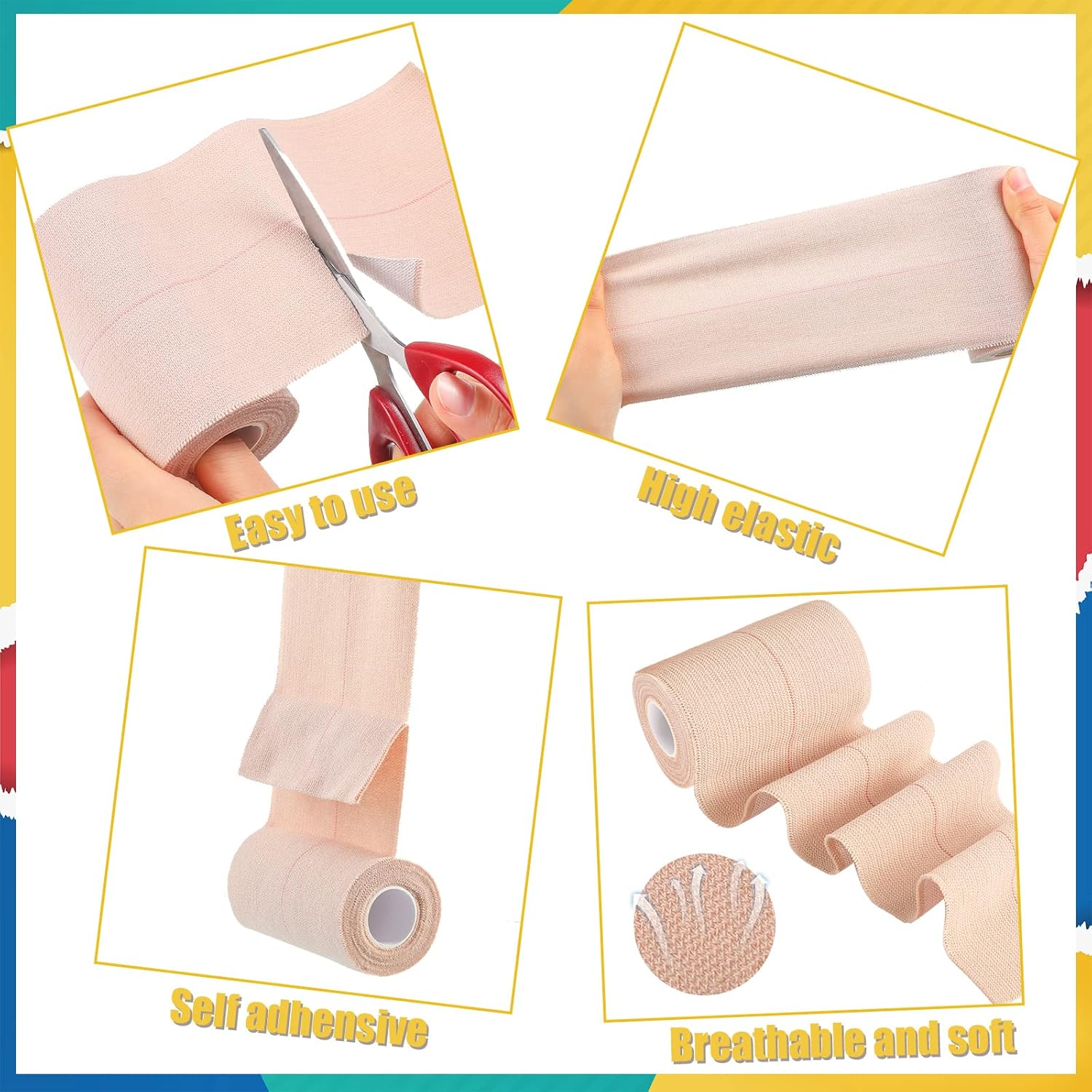 - Soft and breathable: our adhesive bandages are made from elastic fabric with a rubber based adhesive, porous backing minimizes skin irritation, a porous, adhesive, elastic, beige colored tape that allows the skin to breathe; Stretches around uneven surfaces