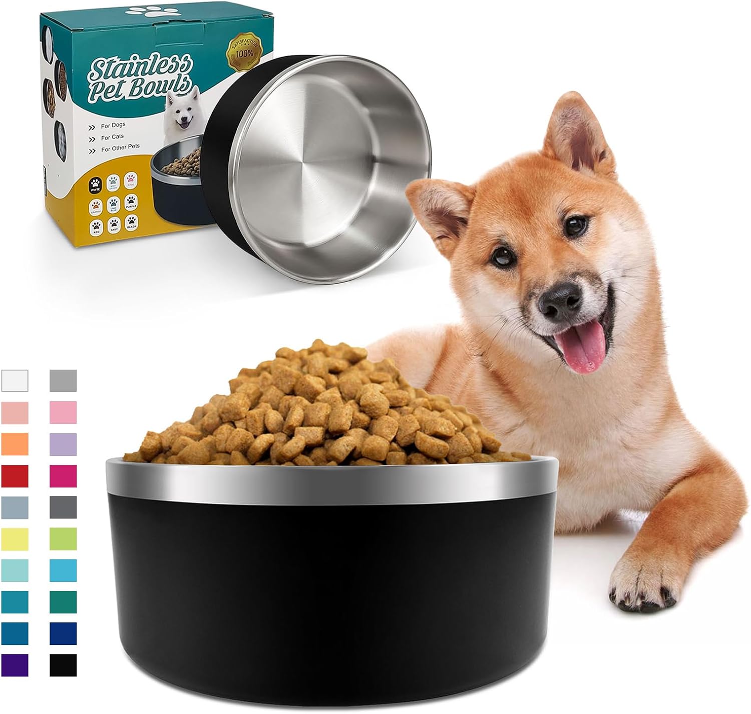 - STAINLESS STEEL DOG BOWLS- Our food and water bowls for dogs are made of double wall insulation and 304 food grade stainless steel, which is super long lasting, rustproof, scratchproof, environmental friendly. The outside of our non-slip dog bowls are made of Acrylonitrile Butadiene Styrene (ABS) for more durability.
