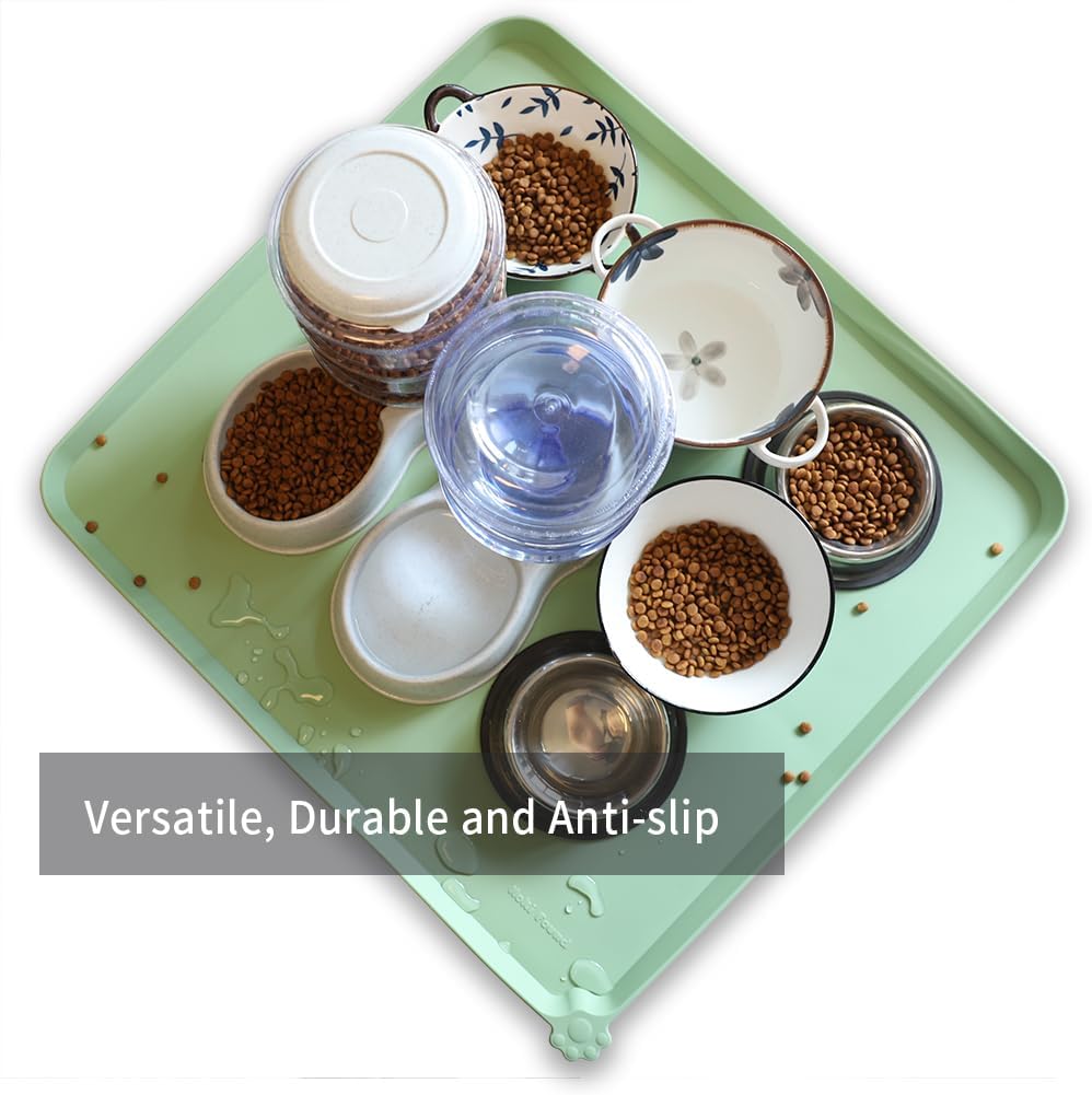 Hoki Found XX-Large Silicone Pet Food Mats Tray - Non Slip Pet Bowl Mats Placemat - Dog Cat Feeding Mat - Waterproof Dog Cat Food Mats -Pet Water Mats for Carpet - Jade