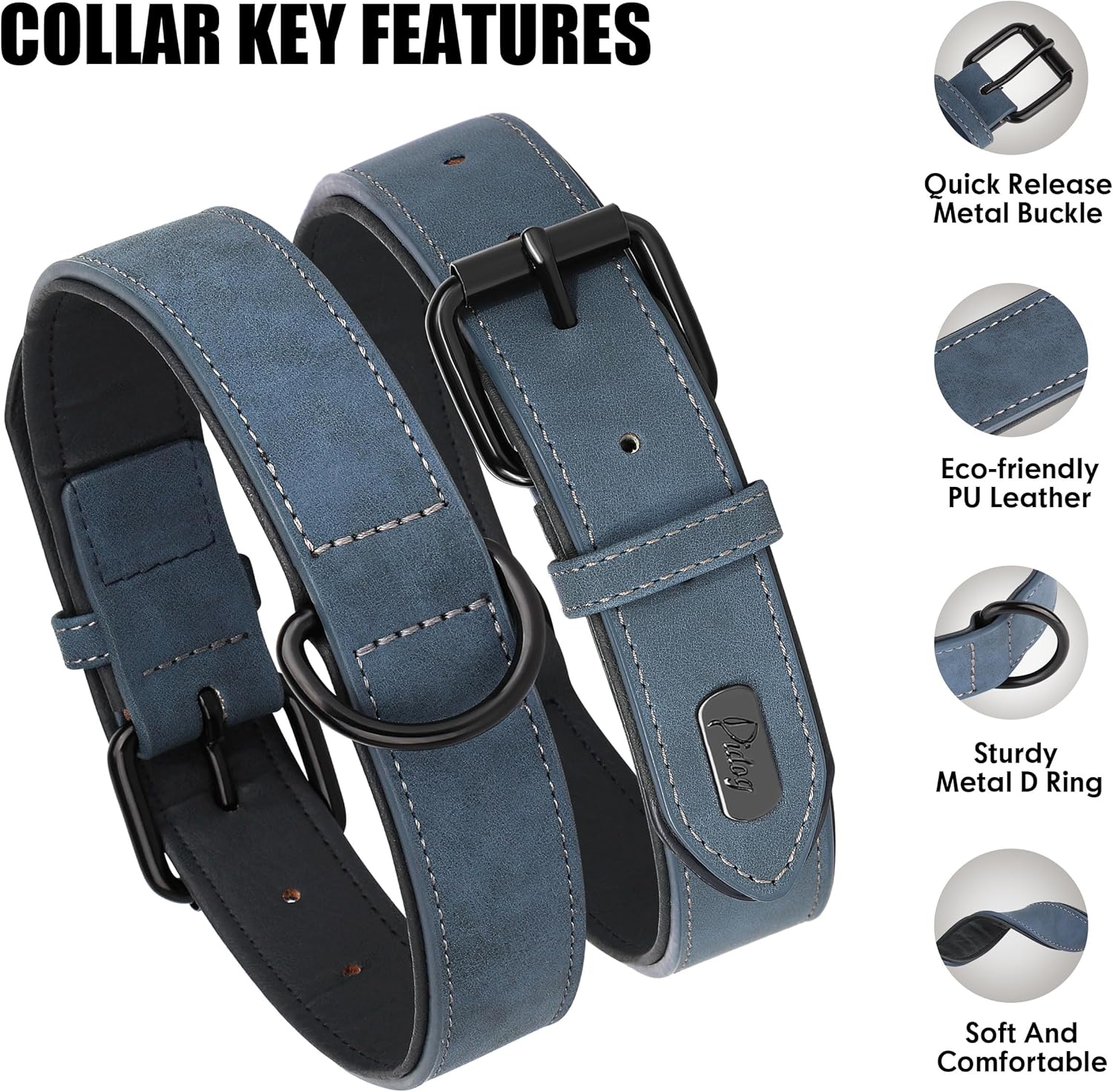 Didog Soft Padded PU Leather Dog Collar, Breathable and Adjustable Dog Collars for Small Dogs, Comfortable for Daily Walk, Blue, M Fit Neck 12-15"(13-22 lbs)