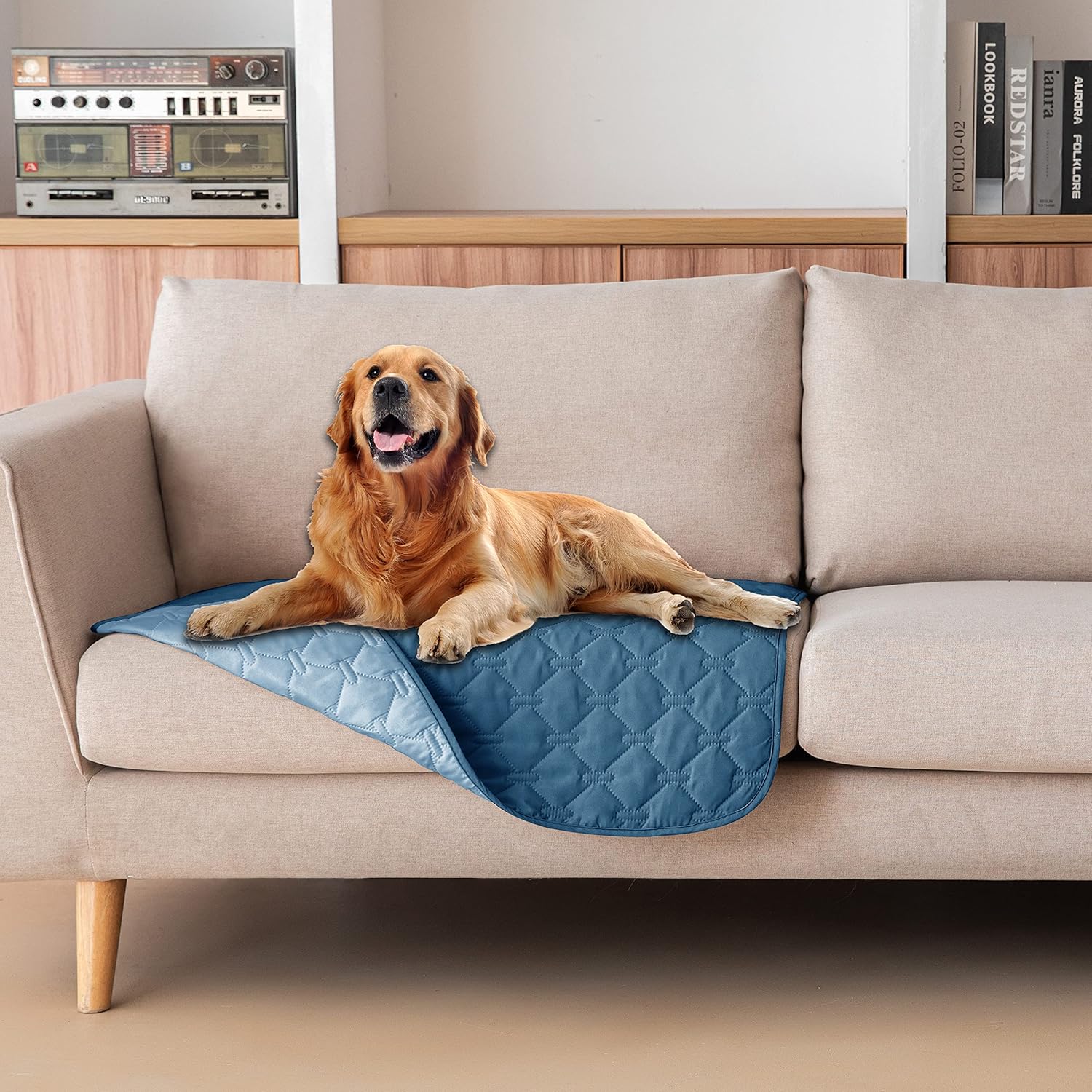 gogobunny 100% Double-Sided Waterproof Dog Bed Cover Pet Blanket Sofa Couch Furniture Protector for Puppy Large Dog Cat, Reversible (30x30 Inch (Pack of 1), Dark Blue/Light Blue)