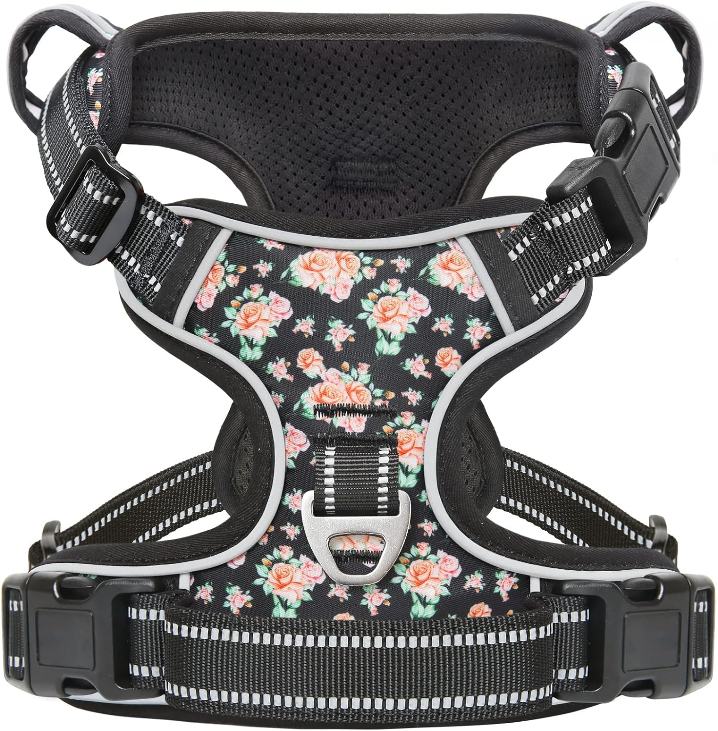 - 【MUCH SAFER & MORE COMFORTABLE】 Breathable mesh lining with soft sponge padding plate of puppy harness prevents injuries, giving extra comfort and protection with enhanced 1600D oxford fabric. The reflective material will be really nice when it gets dark. Also, your dog will be saw easily. This reflective material can make drivers have long time to react, which ensure your dog’s safety!