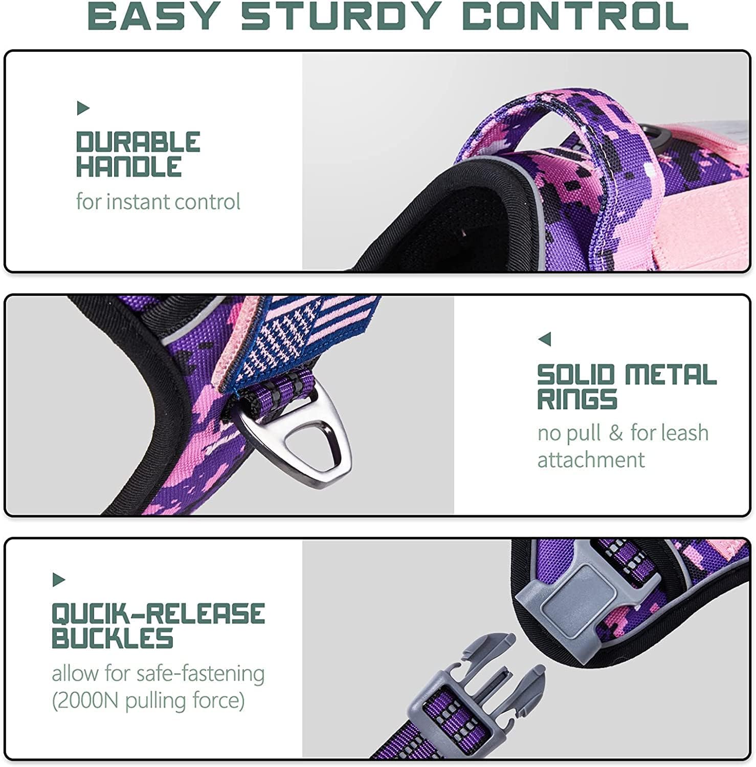 BUMBIN Tactical Dog Harness for Small Dogs No Pull, Famous TIK Tok No Pull Puppy Harness, Fit Smart Reflective Pet Walking Harness for Training, Adjustable Dog Vest Harness with Handle Purple Camo XS