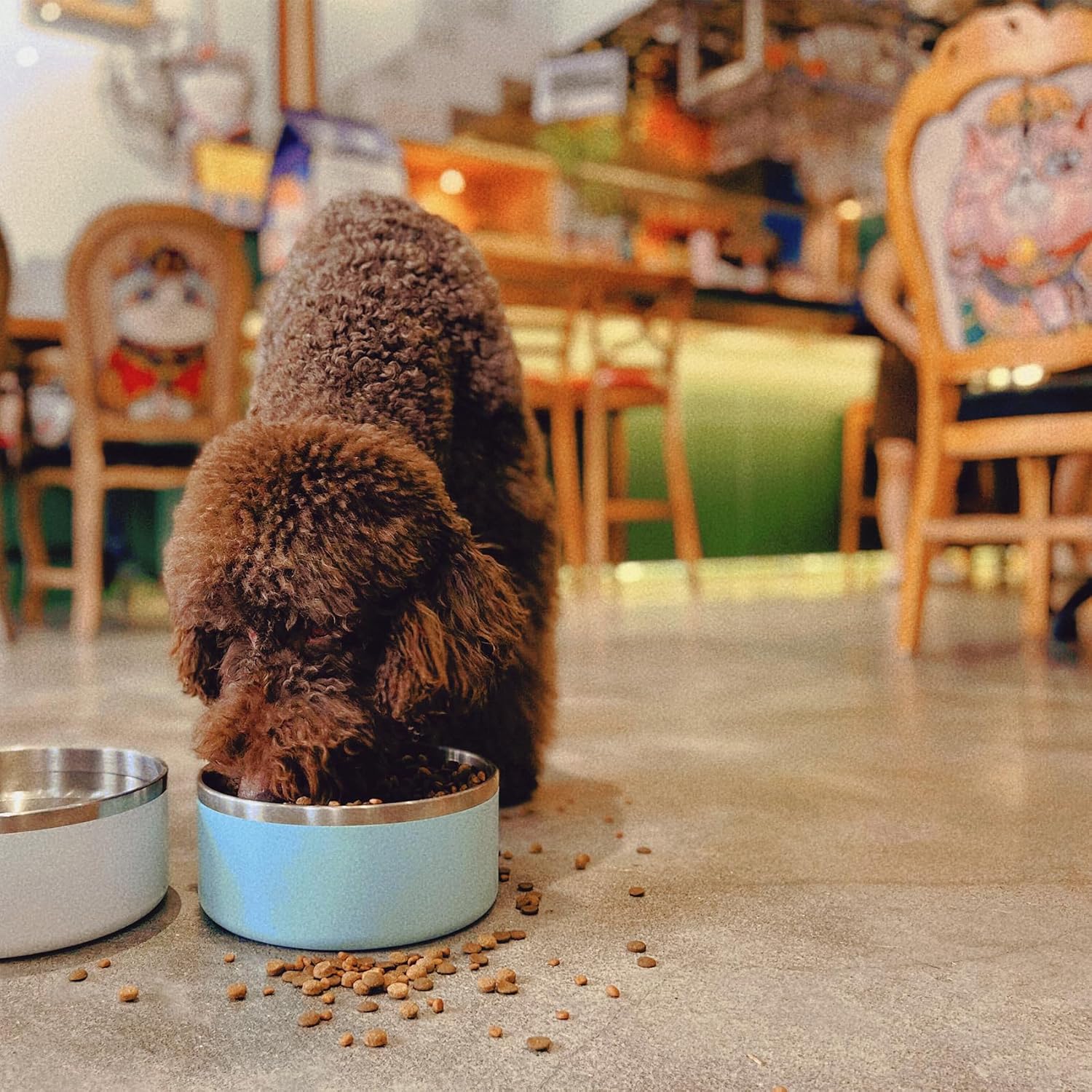 - STAINLESS STEEL DOG BOWLS-Our food and water bowls for dogs are made of double wall insulation and 304 food grade stainless steel, which is super long lasting, rustproof, scratchproof, environmental friendly. The outside of our non-slip dog bowls are made of Acrylonitrile Butadiene Styrene (ABS) for more durability.