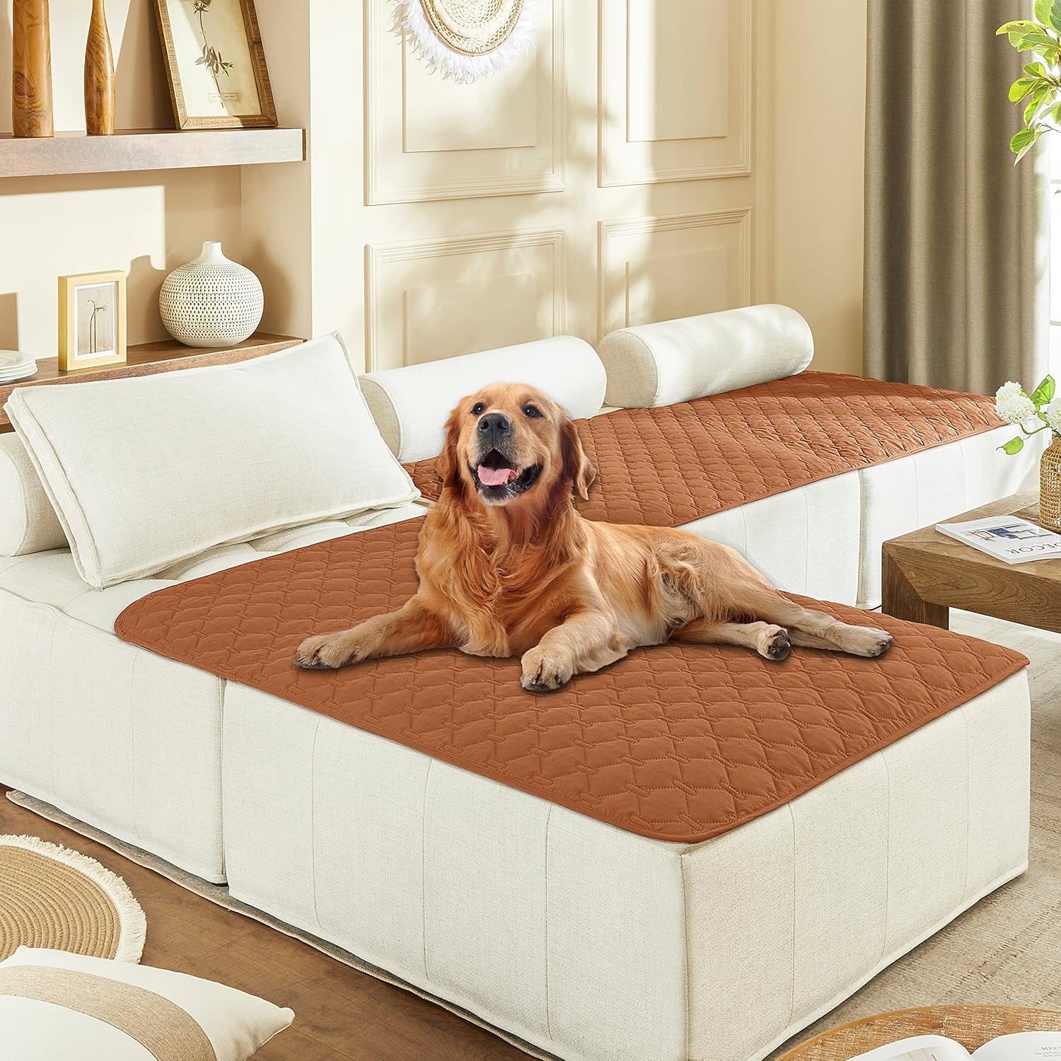 gogobunny 100% Double-Sided Waterproof Dog Bed Cover Pet Blanket Sofa Couch Furniture Protector for Puppy Large Dog Cat, Reversible (40x50 Inch (Pack of 1), Dark Pumpkin/Light Pumpkin)
