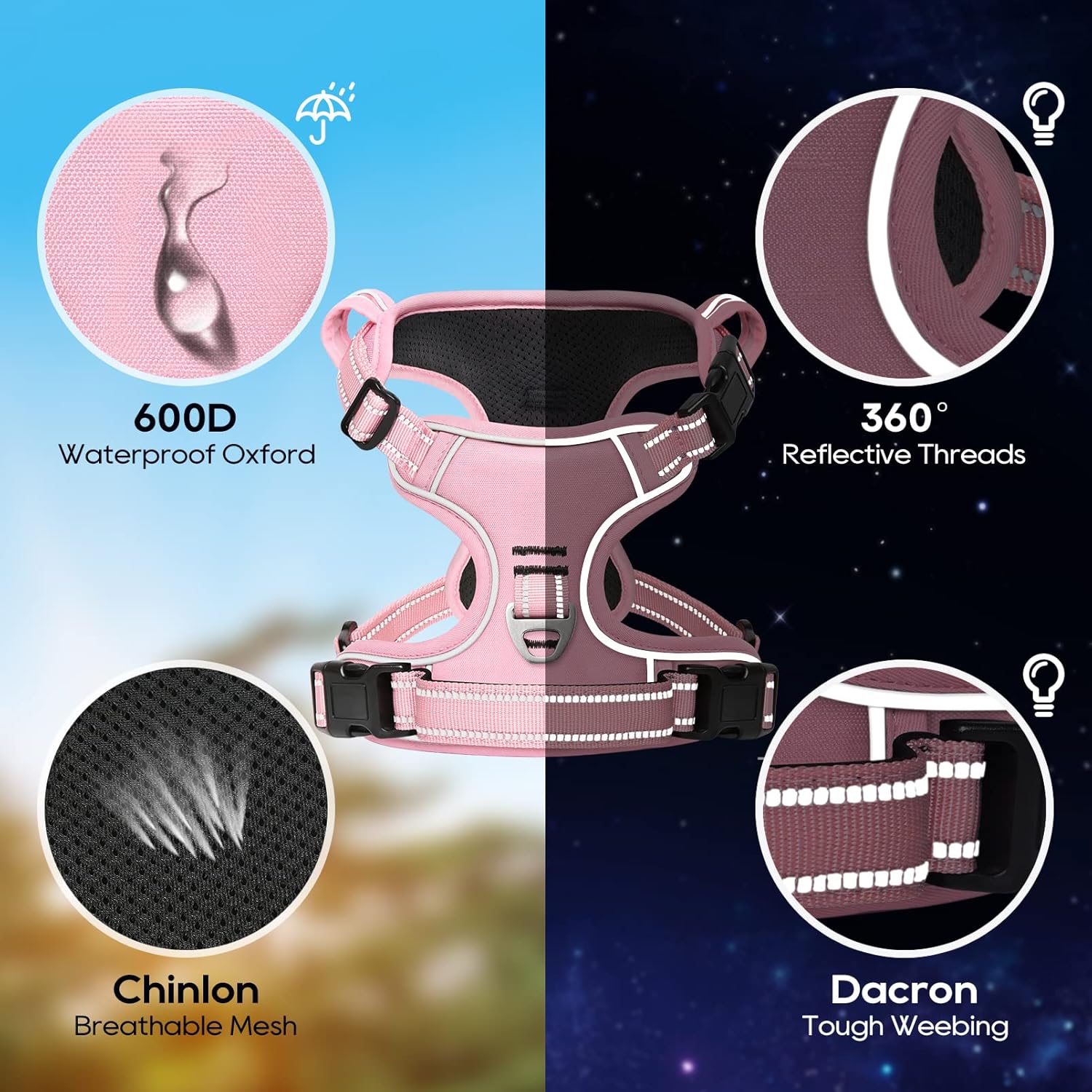 Timos Dog Harness, 3 Snap Buckles No-Pull Soft Padded Dog Vest with 2 Metal Leash Clips, Adjustable Reflective No Choke Pet Harness with Easy Control Handle for Small Dogs,Pale Pink,S