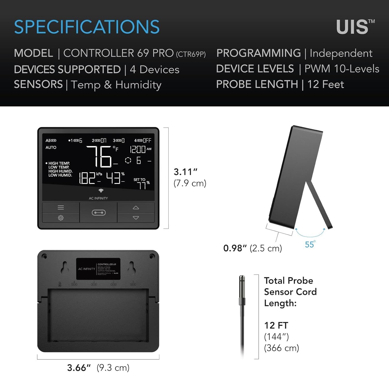 AC Infinity Controller 69 PRO, Smart Environmental Controller with Temperature, Humidity, VPD, Timer, Cycle, Schedule Controls, for Grow Tent Cooling Ventilation Lighting