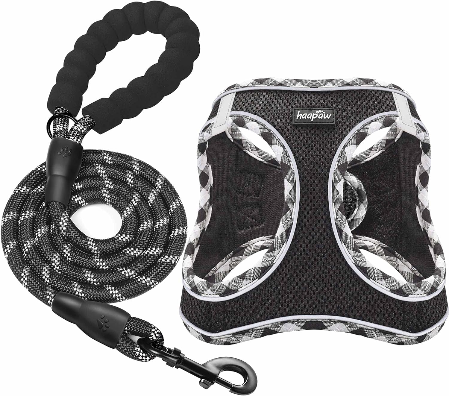 haapaw Dog Harness with Leash Set, No Pull Adjustable Reflective Step-in Puppy Harness with Thickened Padded Vest for Extra-Small/Small Medium Dogs