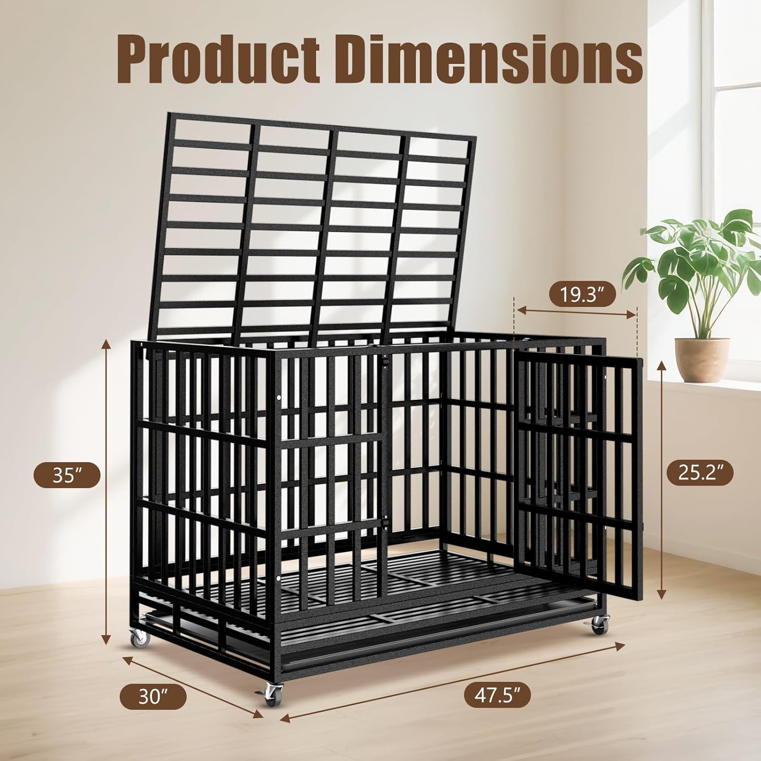 - 【Removable caster wheels】 The 360-degree swivel caster wheels with brakes make this large dog crate easy and safe to roll around. You can also take the wheels off if they aren't needed, especially when traveling.
