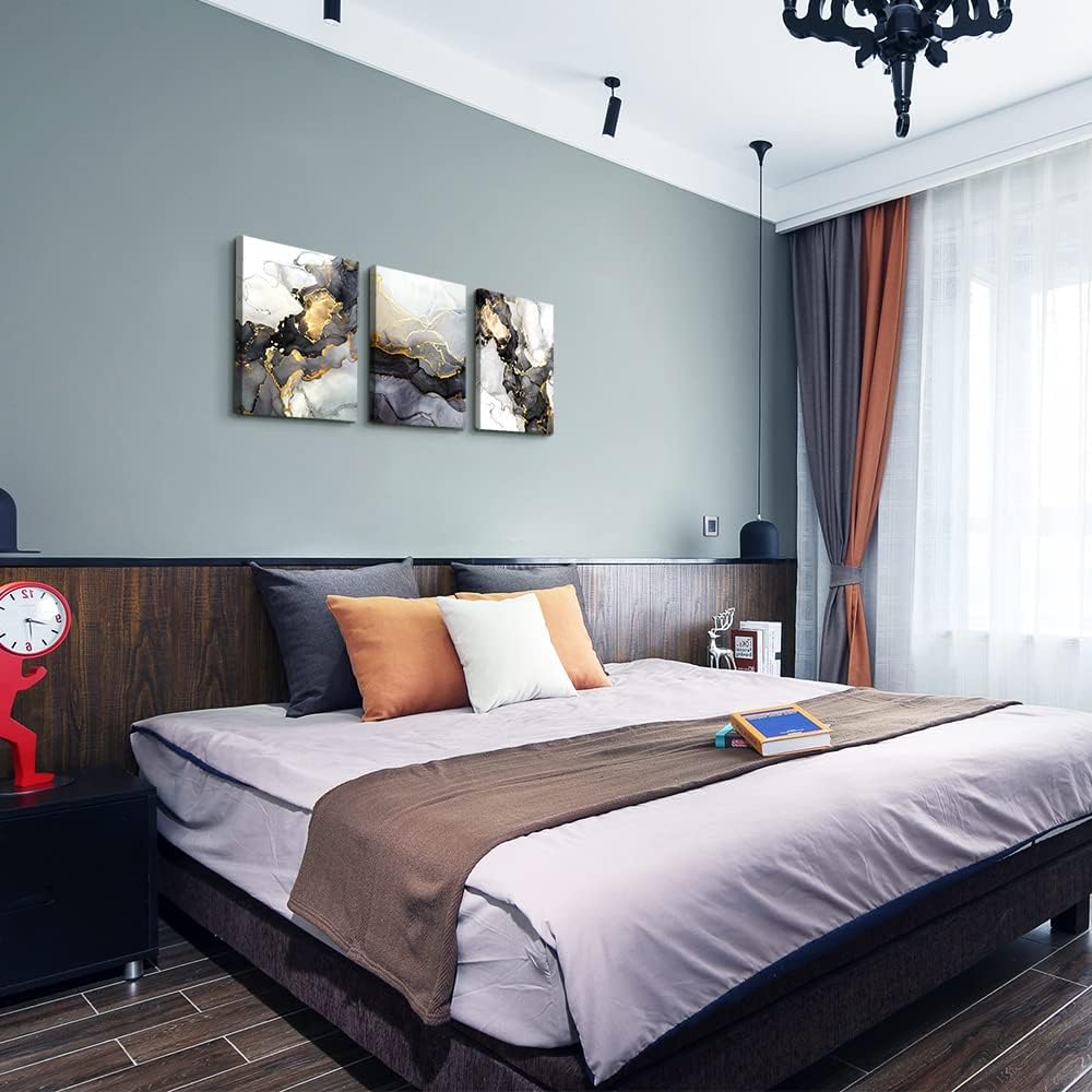 AHUASJART Abstract Canvas Wall Art For Living Room Boho Decor Bedroom Fashion Decors Office Ink Paintings 3 Pcs Framed Pictures Artwork Bathroom Home 16x24''