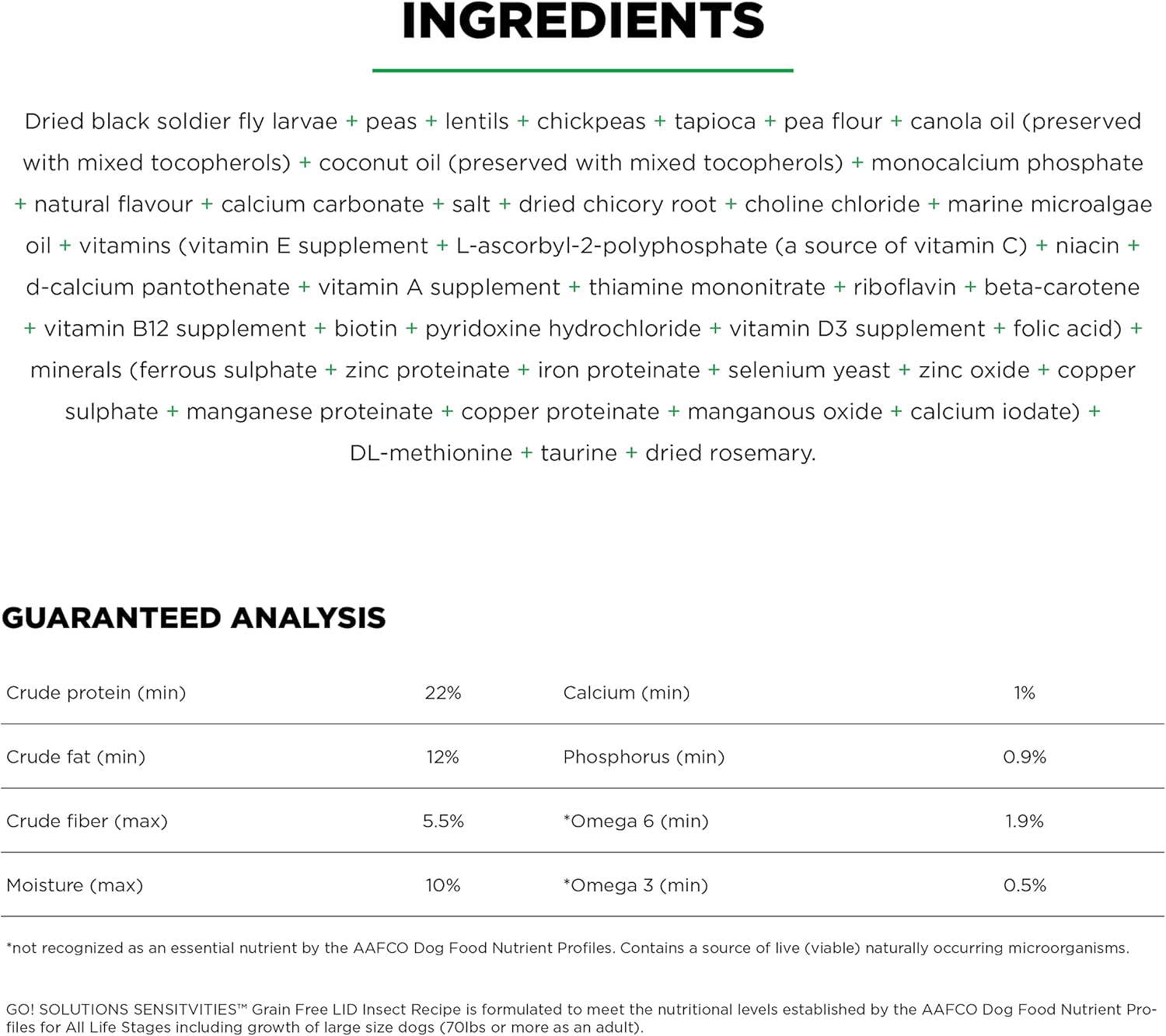 Go! Solutions Sensitivities Limited Ingredients, Grain-Free Dry Dog Food, Insect Recipe for Sensitive Stomach, 12 lb Bag