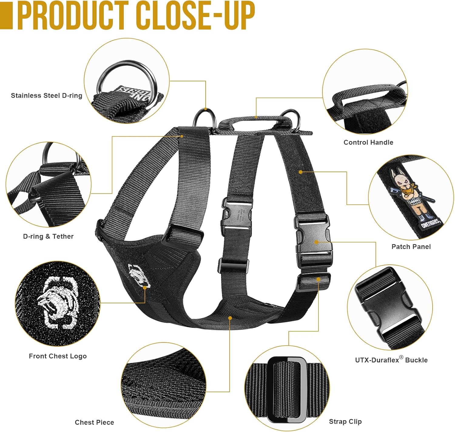 - EFFECTIVE CONTROL - 2 Stainless steel D-rings and a padded traffic control handle to keep your pup safe and maneuver him/her away from trouble during daily walks, hikes and adventures