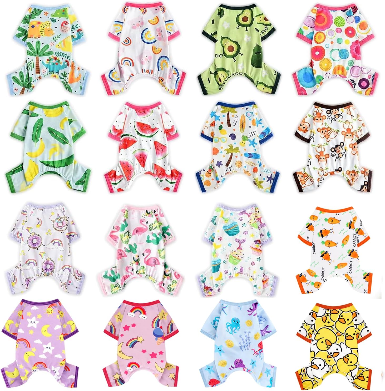 - 【DOG PJS MADE FOR SUMMWER】Our pet pajamas crafted in poly-cotton blend. The fabric of these puppy clothes is SOFT, STRETCHY and BREATHABLE. The dog pajamas is cool enough for all-day wear, sleep time. Nice dog pajamas for small dogs, dog summer clothes, medium dog pjs, dog jammies for small dogs.