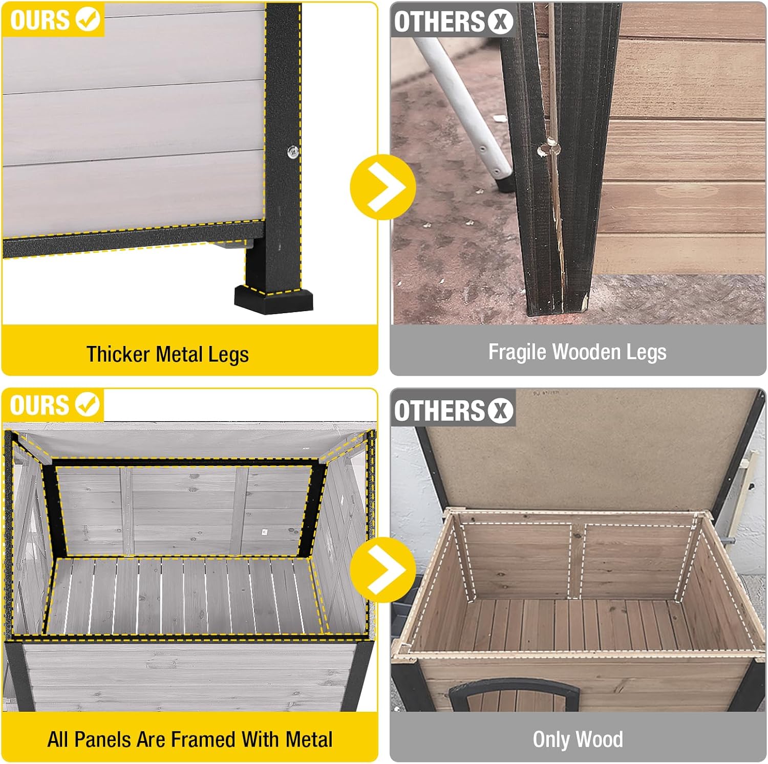 - Weatherproof Structural Design: Our dog house has an airtight protective design and a sloped waterproof roof to prevent dirty water from flowing into the house, protecting your pet from dirt, rain, and snow and keeping the cabin comfortable and dry