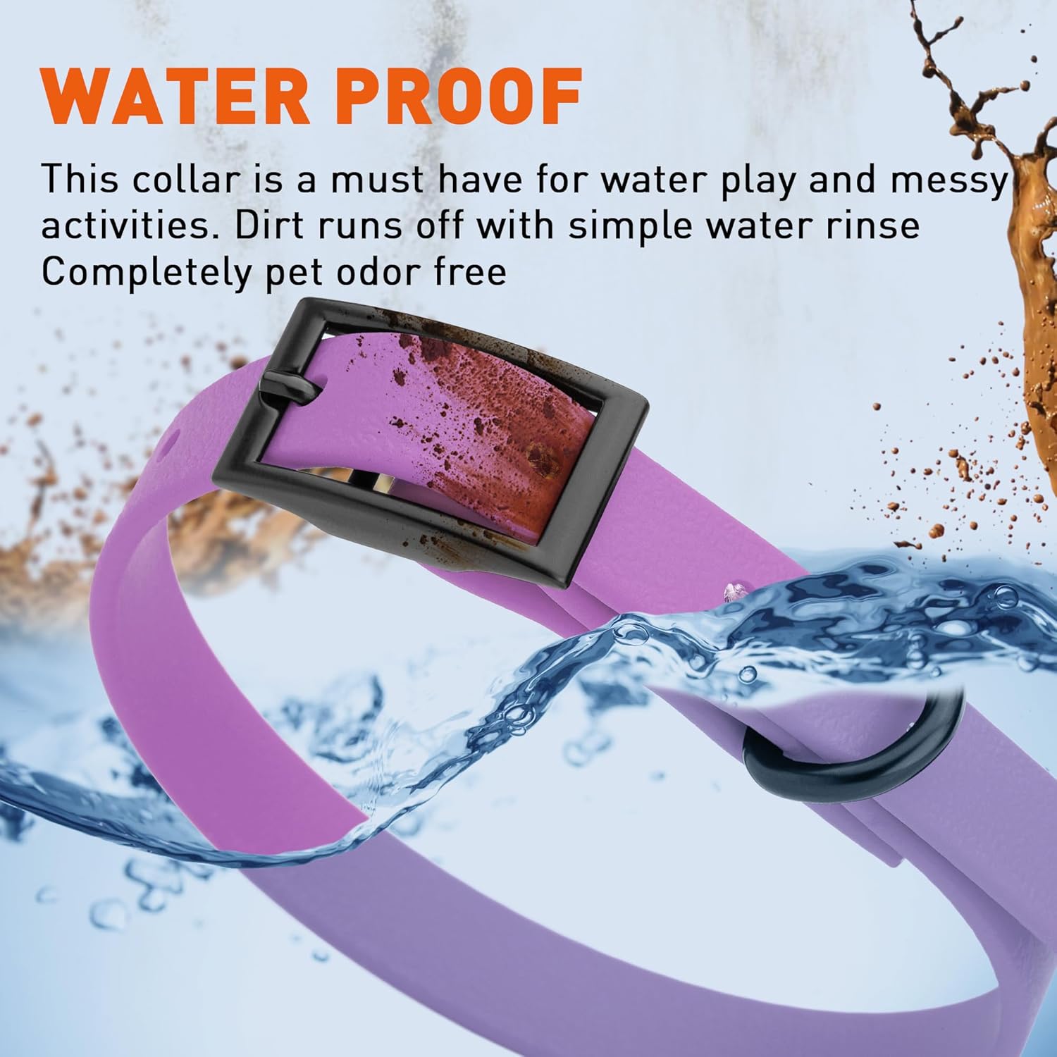 Dogline Biothane Waterproof Dog Collar Strong Coated Nylon Webbing with Black Hardware Odor- Proof for Easy Care Easy to Clean High Performance Fits Small Medium or Large Dogs, Amethyst Purple