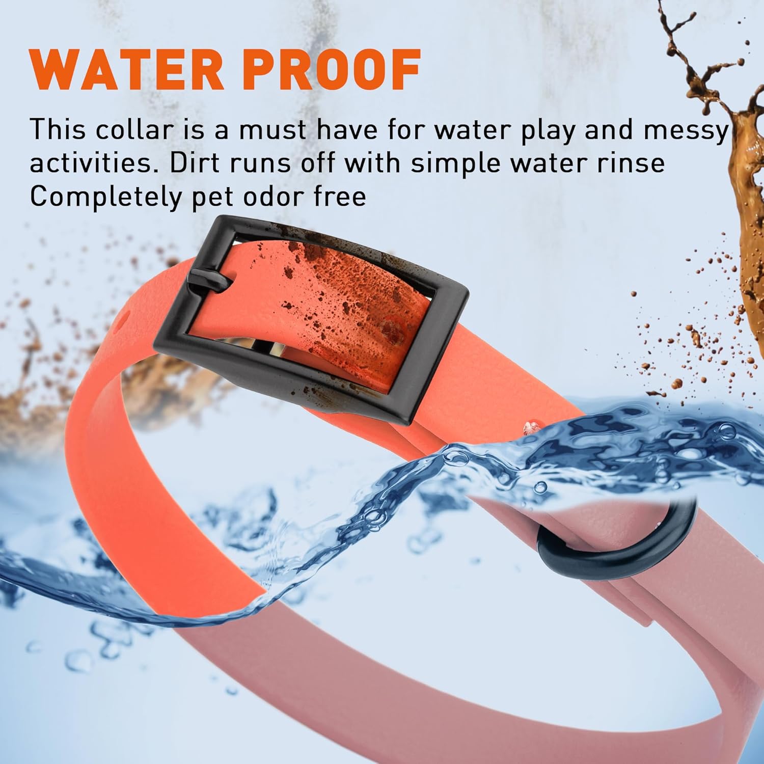 Dogline Biothane Waterproof Dog Collar Strong Coated Nylon Webbing with Black Hardware Odor- Proof for Easy Care Easy to Clean High Performance Fits Small Medium or Large Dogs, Coral