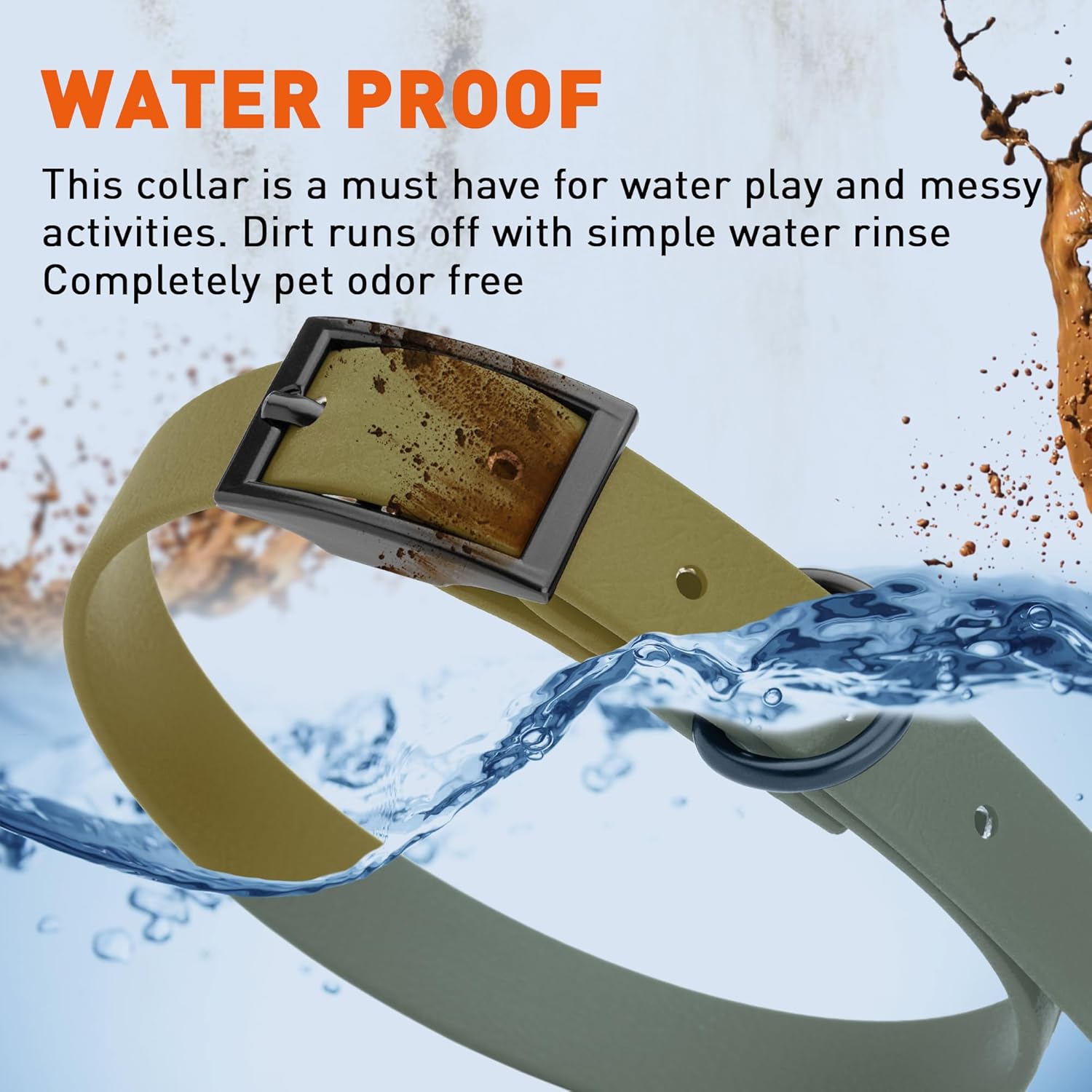 Dogline Biothane Waterproof Dog Collar Strong Coated Nylon Webbing with Black Hardware Odor- Proof for Easy Care Easy to Clean High Performance Fits Small Medium or Large Dogs, Olive Drab Green