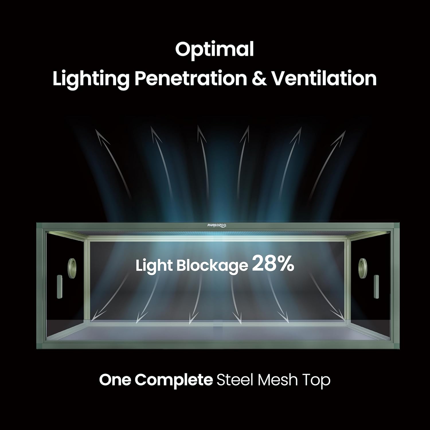 - ăHighly AdaptiveăWell-lit screen top with only 28% blockage. Compatible with many reptile accessories and equipment, such as heat lamps for reptiles, reptile humidifiers, reptile misters, reptile foggers, reptile UVA and UVB. Our reptile terrarium is great for holding temps and humidity.