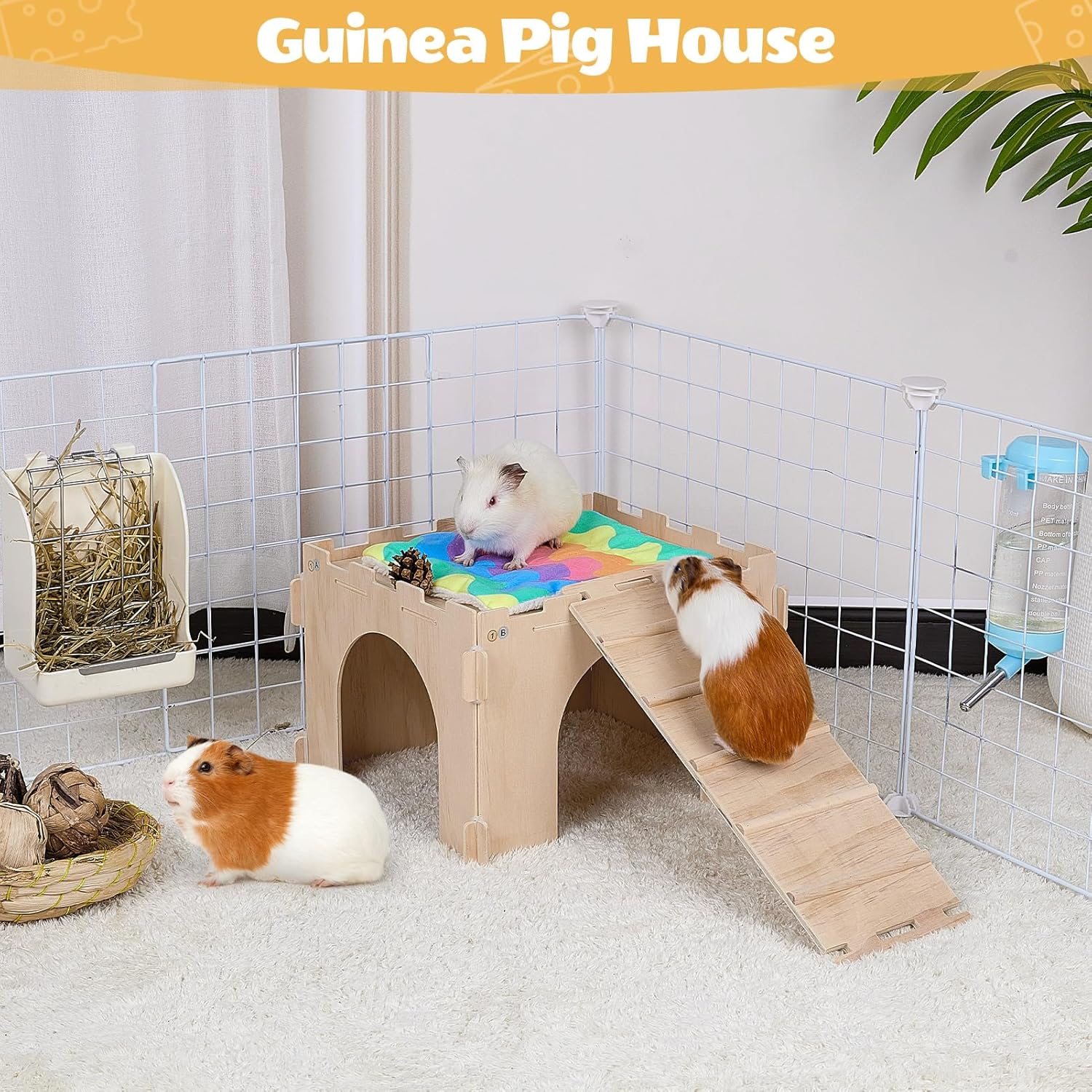 - Come with Guinea Pig Bed: This guinea pig hideout also comes with super absorbent mats that preserves the house or floor from animal urine and droppings; The changing pad is reusable and made of comfortable and soft fabric