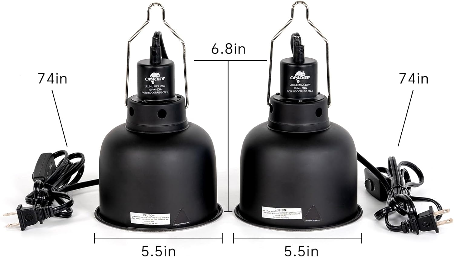 - Easy & Safe for Use: CAVACHEW reptile heat lamp fixture uses independent switches and hooks, easy to install and safe for use. Equipped with heat dissipation holes, which can extend the service life of the bulb.