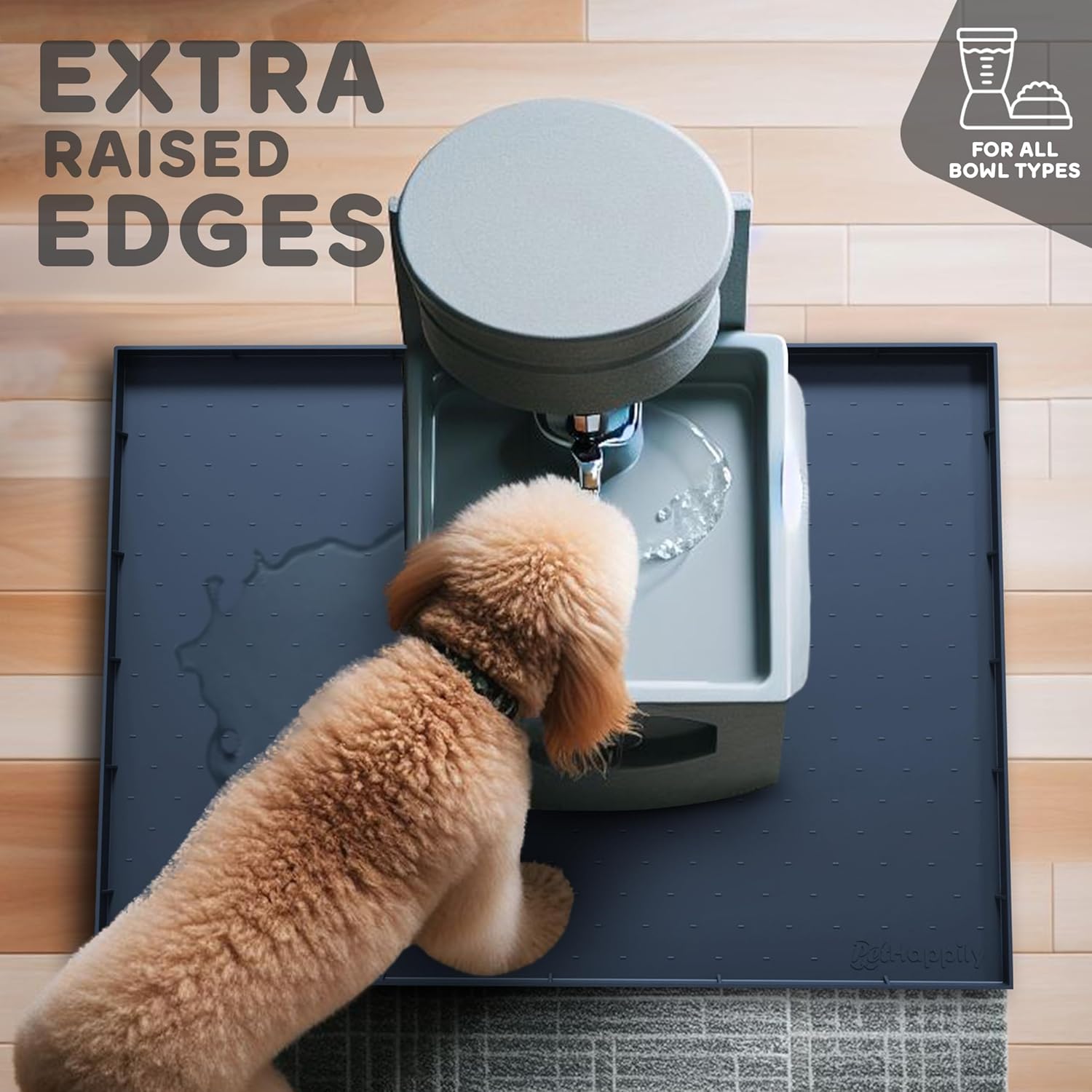 - RAISED EDGES KEEP THE MESSES WHERE IT BELONGS: Keep Your Home Spotless & Enjoy Hassle-Free Dinnertime with Your Furry Friend! Whether they eat with enthusiasm or like to play with their food, our 32"x24x1" dog food mats for floors waterproof are specially designed to reduce cleanup time for both wet and dry foods. Treat yourself and your furry pal to a cleaner, more enjoyable mealtime experience.
