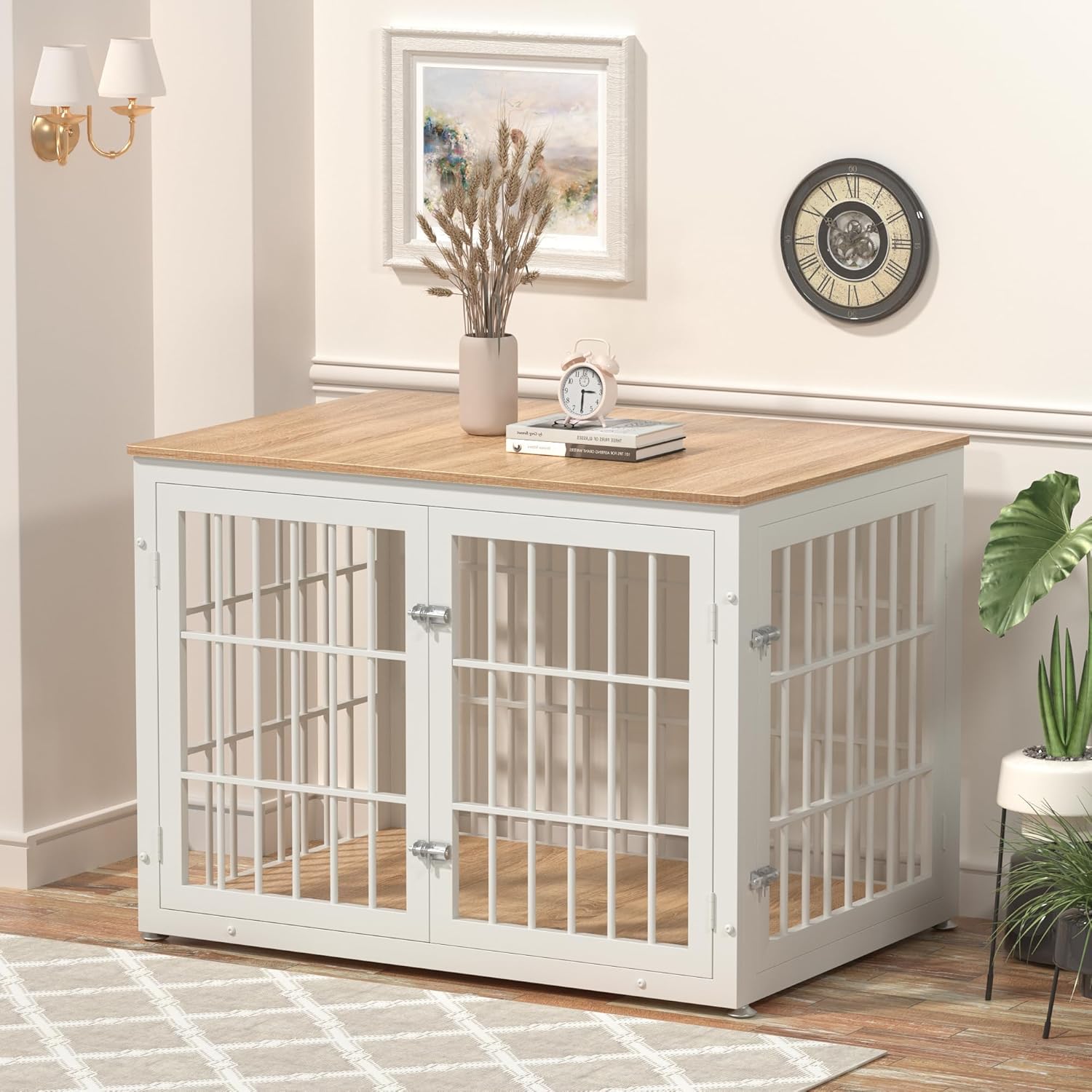 - 【Furniture-Style】This dog crate can be used as an elegant end table while providing a safe area for your furry friend. Furniture style is able to blend in and complement virtually any decor theme.