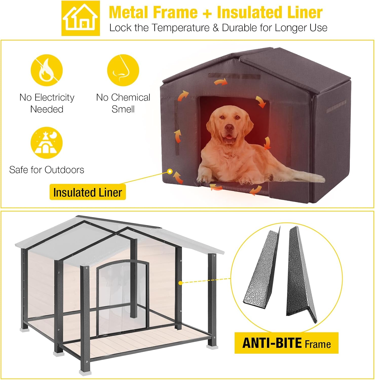 Aivituvin Large Dog House Outdoor Insulated Dog Kennel with Insulated Liner for Winter