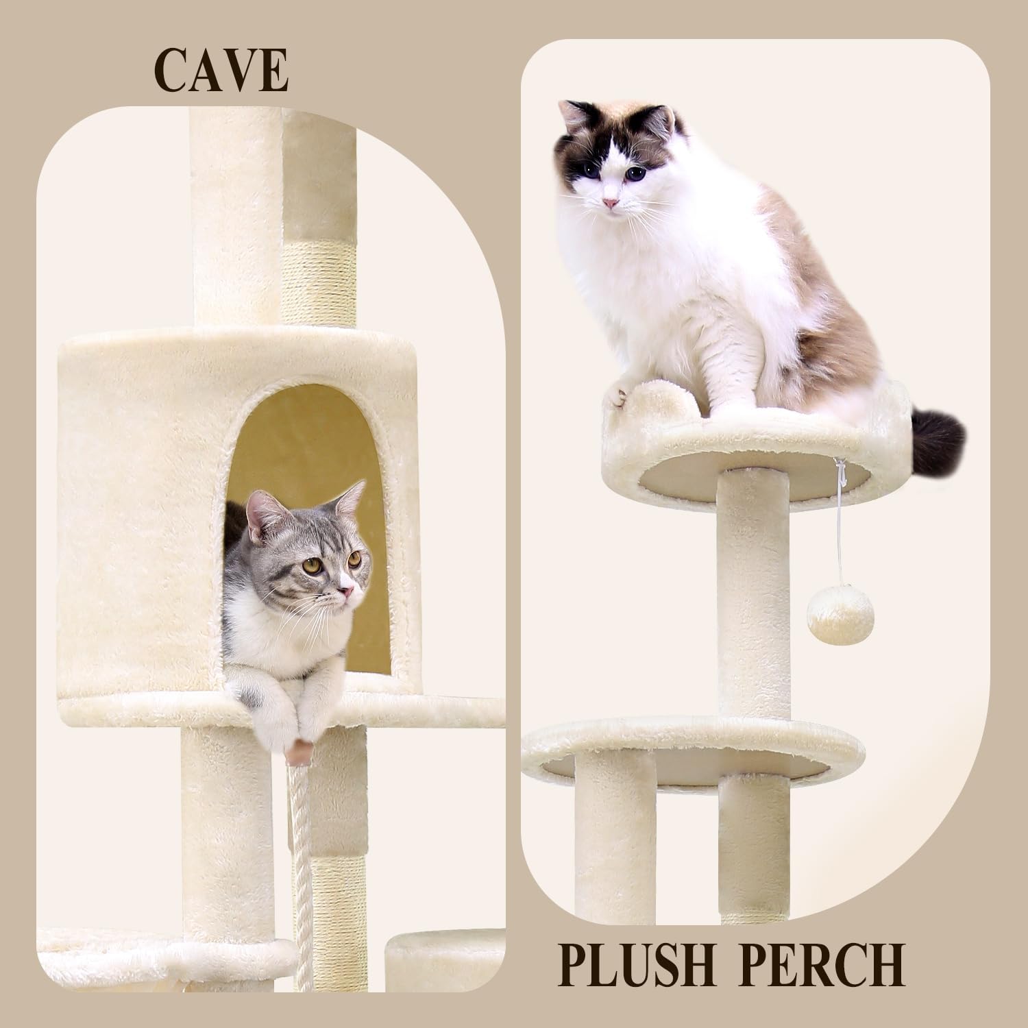 - IDEAL FOR SMALL CATS: Specially designed for small to medium cats under 12 lbs, this 81-inch artistic cat tower features a slim, space-saving design. Plush surfaces and natural sisal posts create a perfect playground for smaller felines while protecting your furniture
