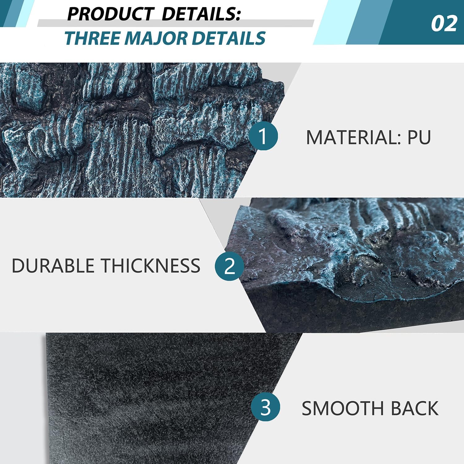 - [Safety Material]:The 3D background is made of high-quality PU material,made of foam of simulated rock/mountain curves,creating a natural rock-looking background for the aquarium.Durable and resistant to fading,placed in a fish tank,it will neither affect the PH value nor hurt the fish.