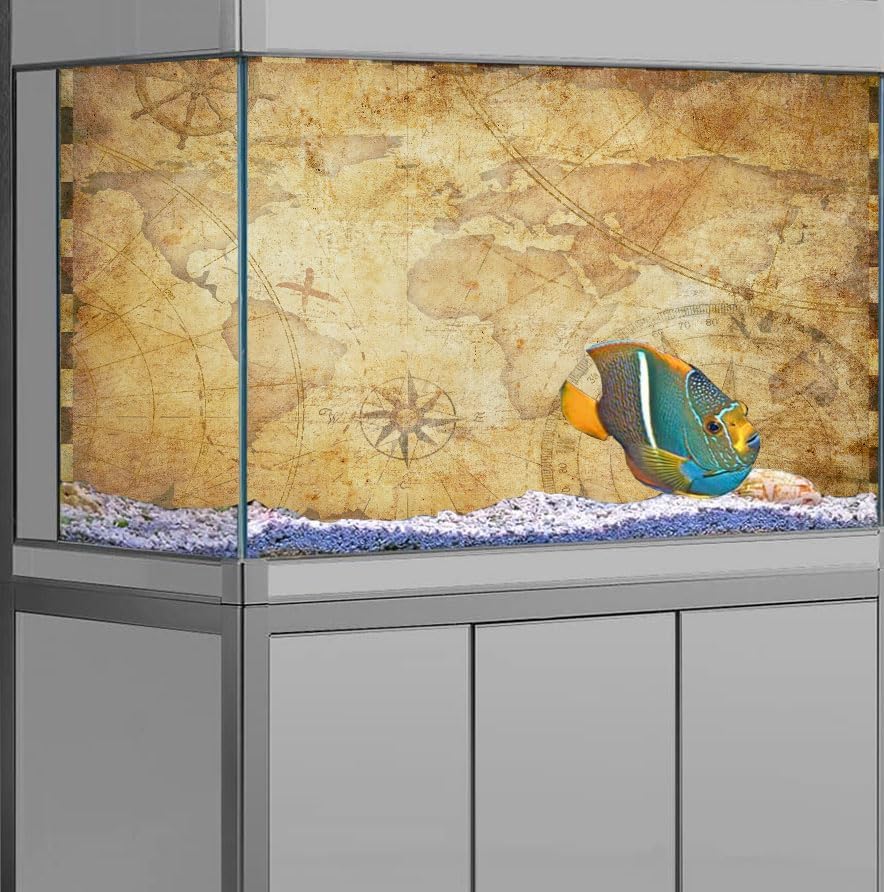 48X18IN Retro Old Travel World Map Terrarium Background, Art Parchment Pirate Treasure Map Reptile Habitat Background with 10EVA Double-Sided Tape