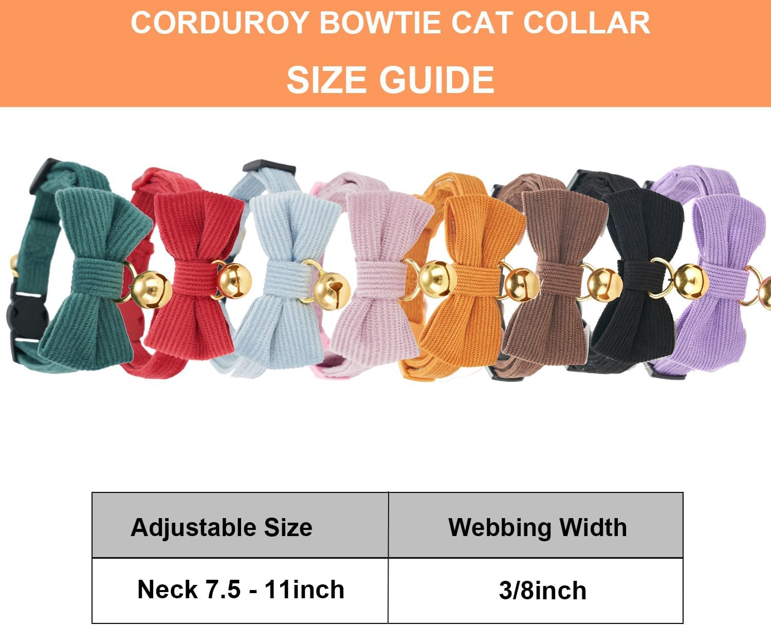 - Size: Adjustable from neck 7.5 - 11 inch, 3/8 inch width. Great for most cats and small puppies.