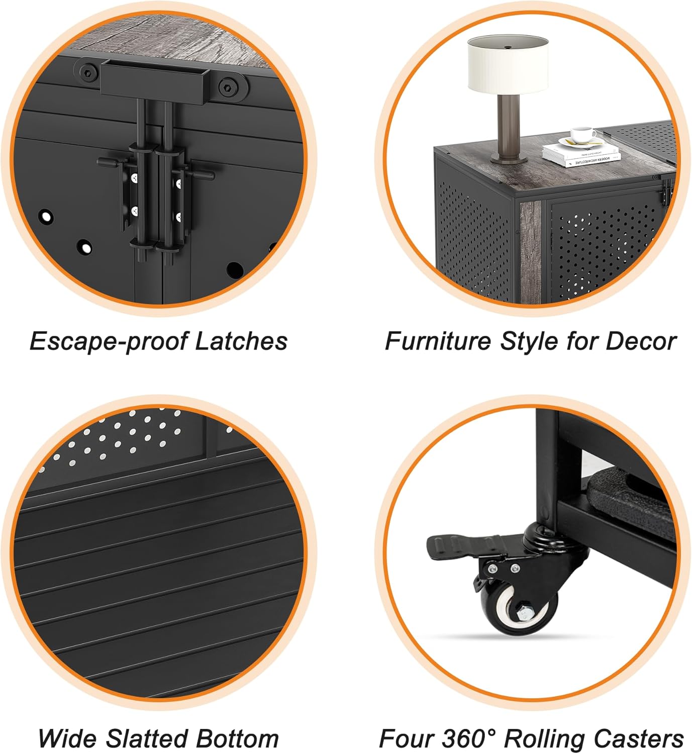 - [Enclosed Design with Ventilation Holes] Unlike traditional crates with metal bars, this innovative design features sturdy panels with strategically placed small holes(Diameter 0.5 inch, specifically designed for dog’s teeth). This design not only prevents the harm caused by bites but also provides ample ventilation for your animal companions.