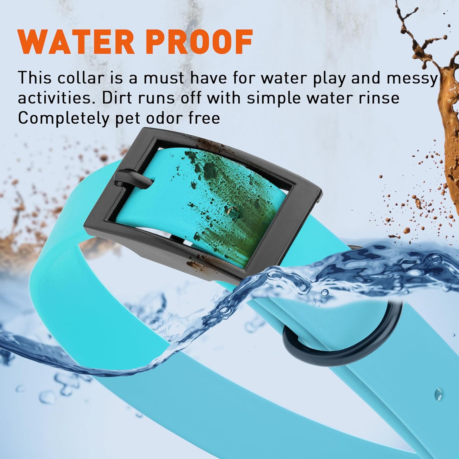 • Free Your Dog to romp in puddles and retrieve from lakes with the Dogline Biothane Waterproof Dog Collar. This water-repellent collar stays dry and odor-free, without shrinking or losing flexibility.