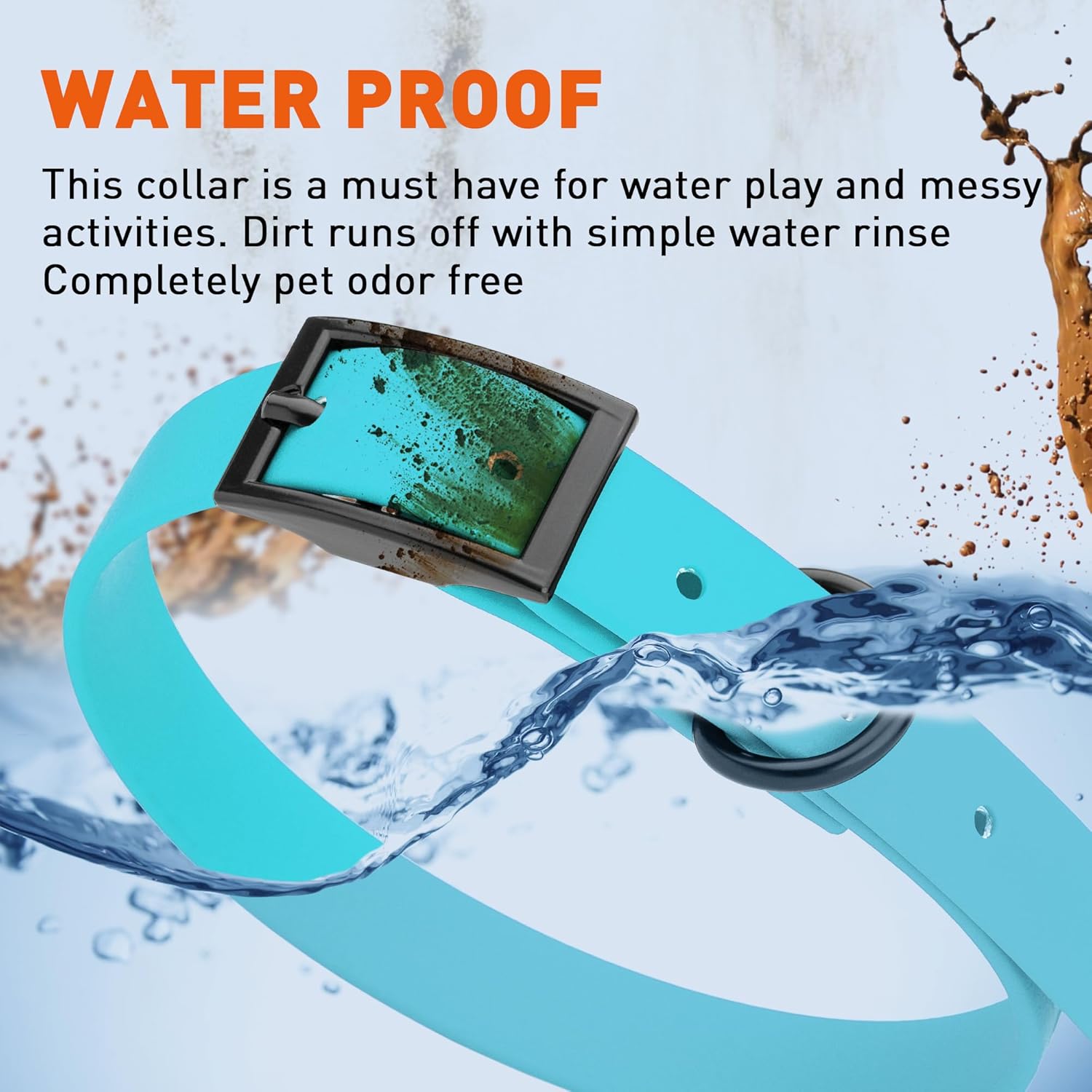 • Free Your Dog to romp in puddles and retrieve from lakes with the Dogline Biothane Waterproof Dog Collar. This water-repellent collar stays dry and odor-free, without shrinking or losing flexibility.